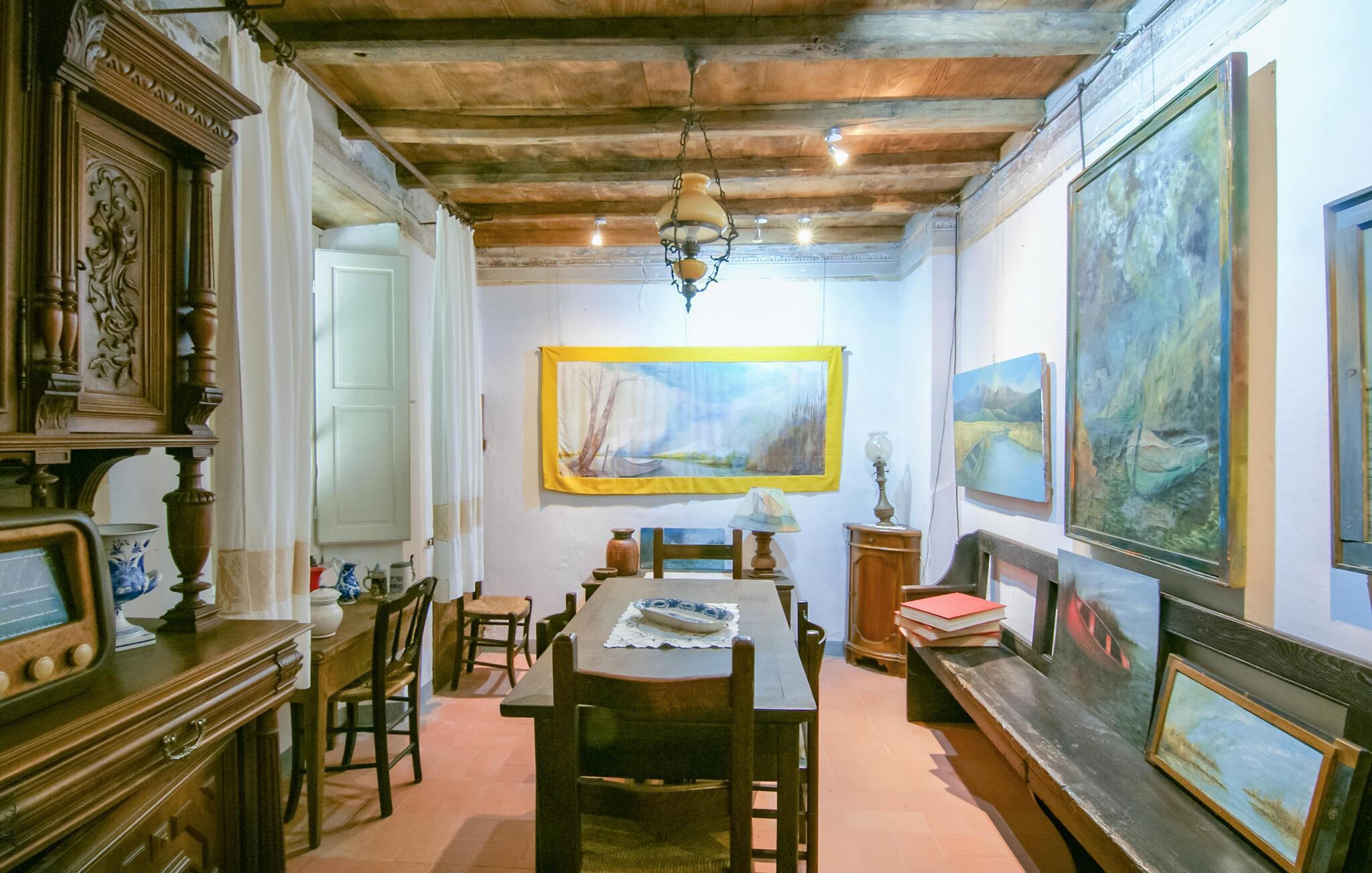 Diese großzügige Ferienwohnung inmitten der idyllischen Berglandschaft lädt Sie zu einer charmanten Zeitreise in ihre liebevoll restaurierten Räumlichkeiten ein. Bereiten Sie im nostalgischen Ambiente der Landhausküche Ihre Mahlzeiten zu und nehmen Sie im urigen Wohnraum unter dem rustikalen Kronleuchter Platz. Lauschen Sie bei Wein und Kerzenschein dem wohligen Knistern des Feuers im Kaminzimmer oder veranstalten Sie gesellige Spieleabende am behaglich beleuchteten Holztisch der Bildergalerie.