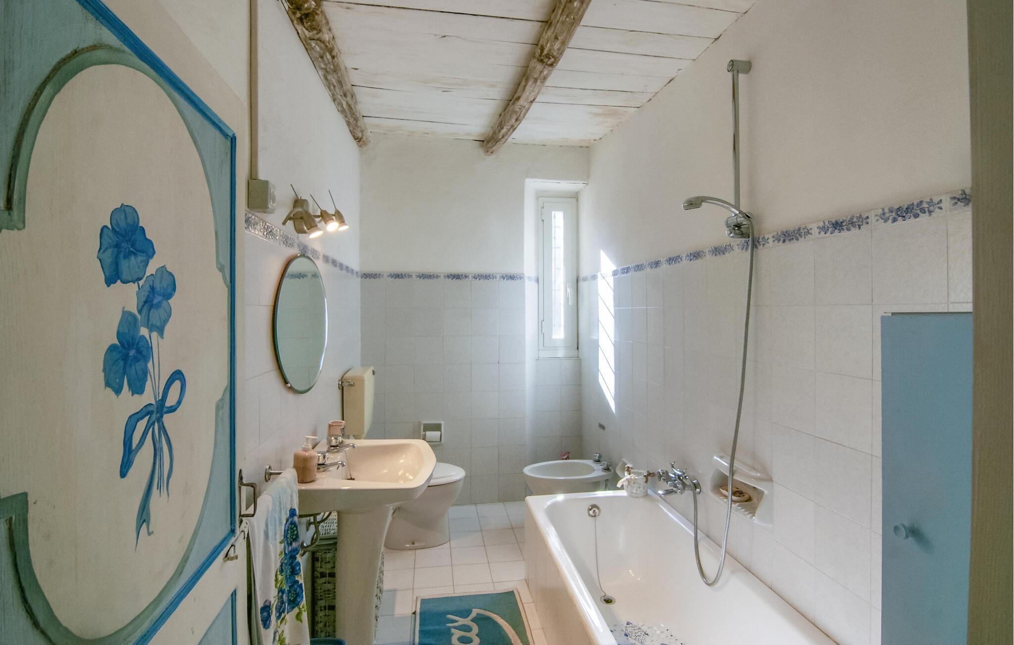 Badezimmer (nr. 1) - WC. Warmes und kaltes Wasser. Handdusche, Wanne und Dusche