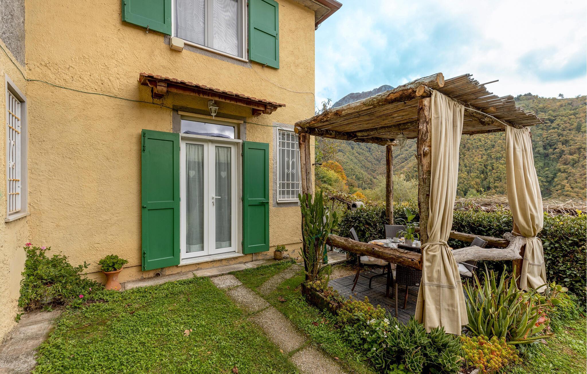 Dieses Feriendomizil ist Teil eines Zweifamilienhauses und befindet sich im kleinen Ort Stazzema, in Hinterland der Versilia, in einem Gebiet mit bewaldeten Hügeln (440 m ü.d.M.) an den Füßen der Apuanischen Alpen. Das Haus ITV187 liegt am Anfang des Dorfes, in peripherischer und panoramischer Lage. Hier sind Sie 17 km von Pietrasanta, 18 km von Forte dei Marmi und den Stränden der Versilia, 50 km von Lucca und Pisa, 77 km von den Cinque Terre (Ligurien) und ca. 120 km von Florenz (ideales Ziel für einen Tagesausflug) entfernt. Vom Grundstück und vom Haus genießt man einen Panoramablick auf einige spektakuläre Berge der Apuanischen Alpen, auf die Wälder und das Tal, das zum Meer hin abfällt. Dieses Gebiet ist im Sommer meist frisch und ruhig. Der Außenbereich des Hauses besteht aus einem gemeinsamen und offenen Naturgrundstück in Hanglage (1500 m2), das teilweise mit Wiese, Bäumen und Büschen angelegt ist. Vor dem Haus steht den Gästen ein privater und möblierter Relax-Bereich zu Verfügung, ideal um im Freien zu essen. Grill und Holzofen zur gemeinsamen Nutzung. Öffentlicher Parkplatz 20 m vom Haus. Schöne Spazier-und Angelmöglichkeiten (5 km Fluss Vezza) in der Umgebung. Das Feriendomizil ist auf zwei Ebenen verteilt: Im Erdgeschoss Wohnküche, Zweibettzimmer und WC. Im 1. Stock: Doppelschlafzimmer und Badezimmer mit Dusche.