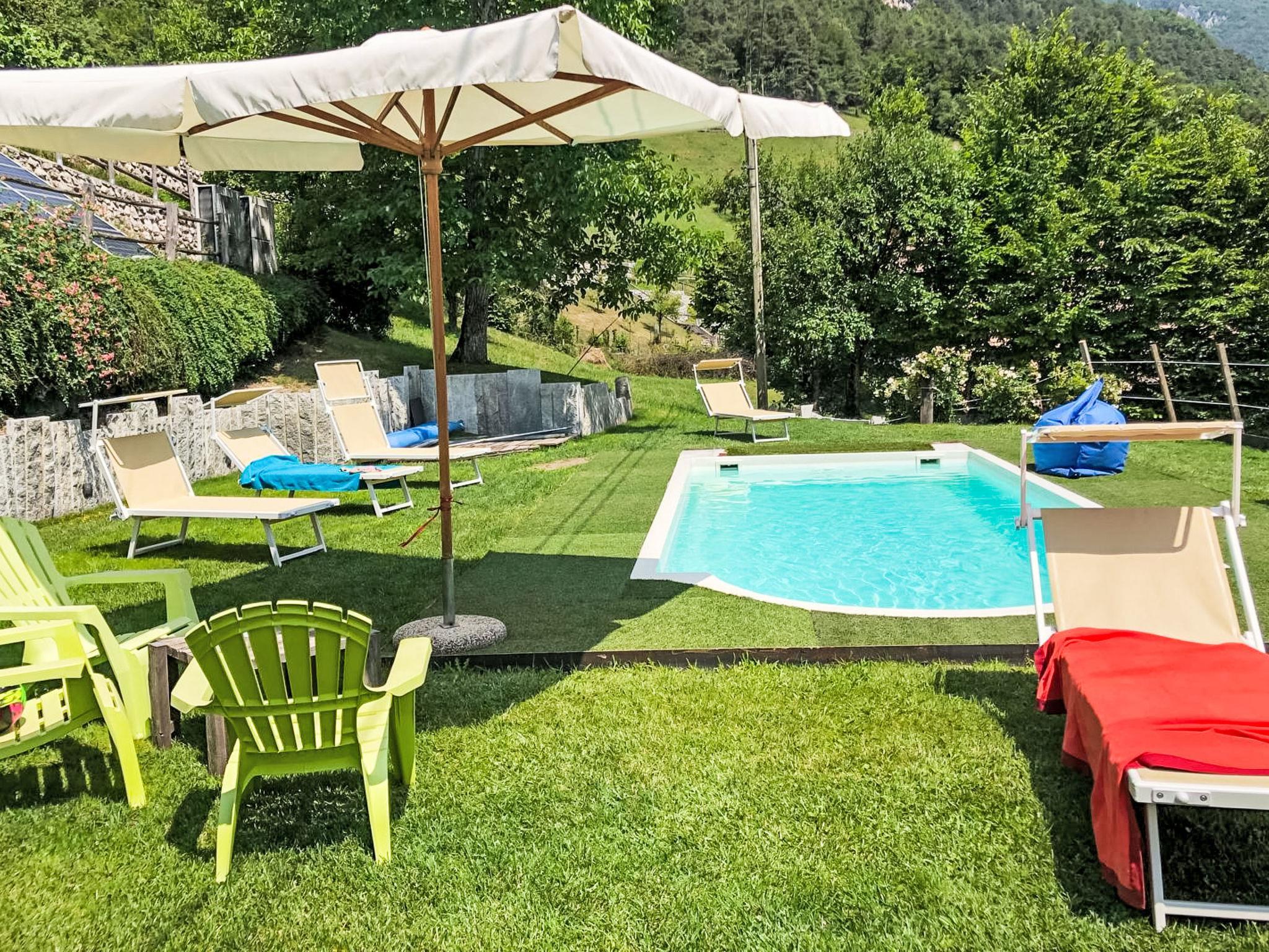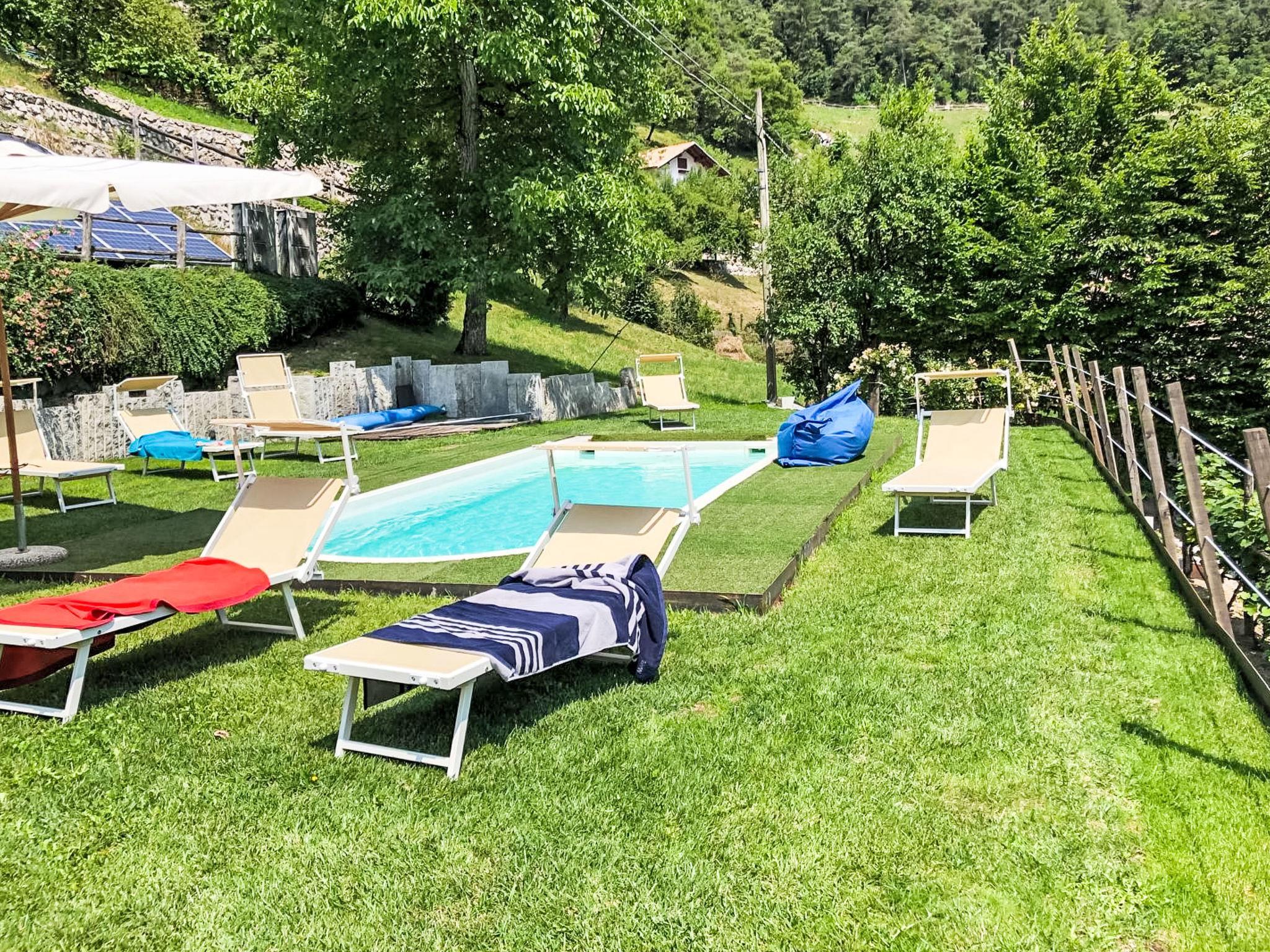 Very cosy, rustic country house "La Meridiana", 2 storeys, detached, surrounded by trees, meadows, fields and vineyards. In the hamlet Tre Ville, in the centre of Coltura, excellent location: right in the centre but still quiet, 50 m from the edge of the forest, in the countryside, south facing position. For shared use: natural state property, large terraced garden (fenced), swimming pool fenced (8 x 4 m, depth 50 - 150 cm, seasonal availability: 15.May. - 15.Oct. pool opening hours: 09:00-19:00) with salt water and internal staircase. Shower/WC in the pool area, pergola (10 m2), barbecue, barbecue house. In the house: storage room for bicycles, storage room for skis, laundry, heating available only from 01.Nov. - 30.Apr.. Linen change weekly (suppl. charge extra). Towel change weekly (suppl. charge extra). Room cleaning weekly on request (extra). Grocery, supermarket 50 m, shopping centre 3 km, bar, bakery 50 m, bus stop "Coltura" 100 m, lake di Garda 30 km. Cycle lane 3 km. Nearby attractions: Bolbenolandia Ski Family Park 7 km, Caderzone Golf Club and Therme 17 km, Palestra di Roccia Preore 5.2 km, Valle del Chiese 22 km, Stazione dei Bus di Tione 5.8 km, Città di Trento 45 km. Well-known ski regions can easily be reached: Pista da Scii di Bolbeno 7 km, Madonna di Campiglio 35 km, Pinzolo 30 km. Well-known lakes can easily be reached: Lago di Garda 30 km, Lago di Molveno 20 km. Hiking paths: Cycle Lane Madonna di Campiglio-Riva D.G 3 km, Sentieri Ferrati delle Falesie 9 km. Groups of teenagers on request only. Please note: the owner lives on the same property.