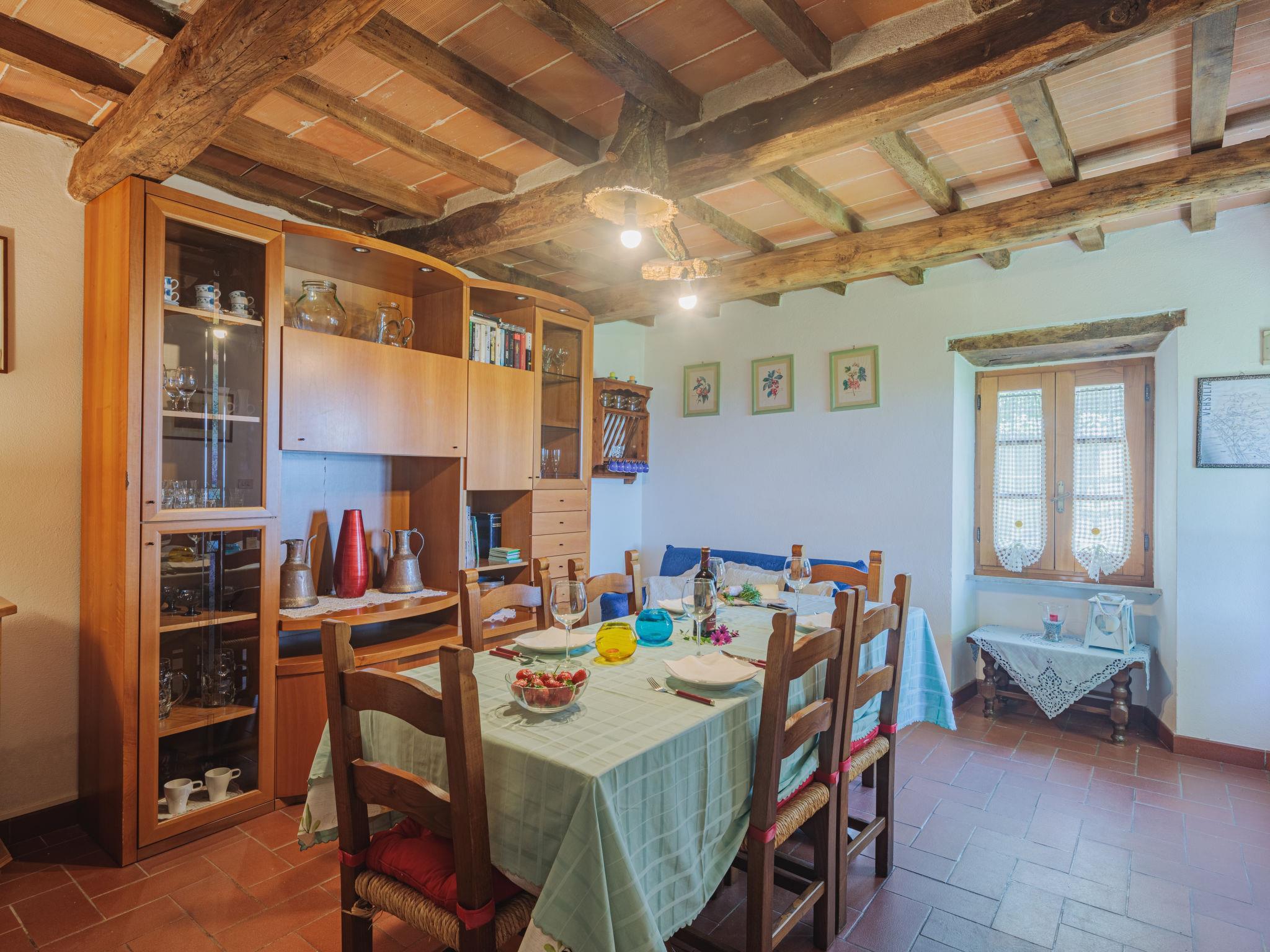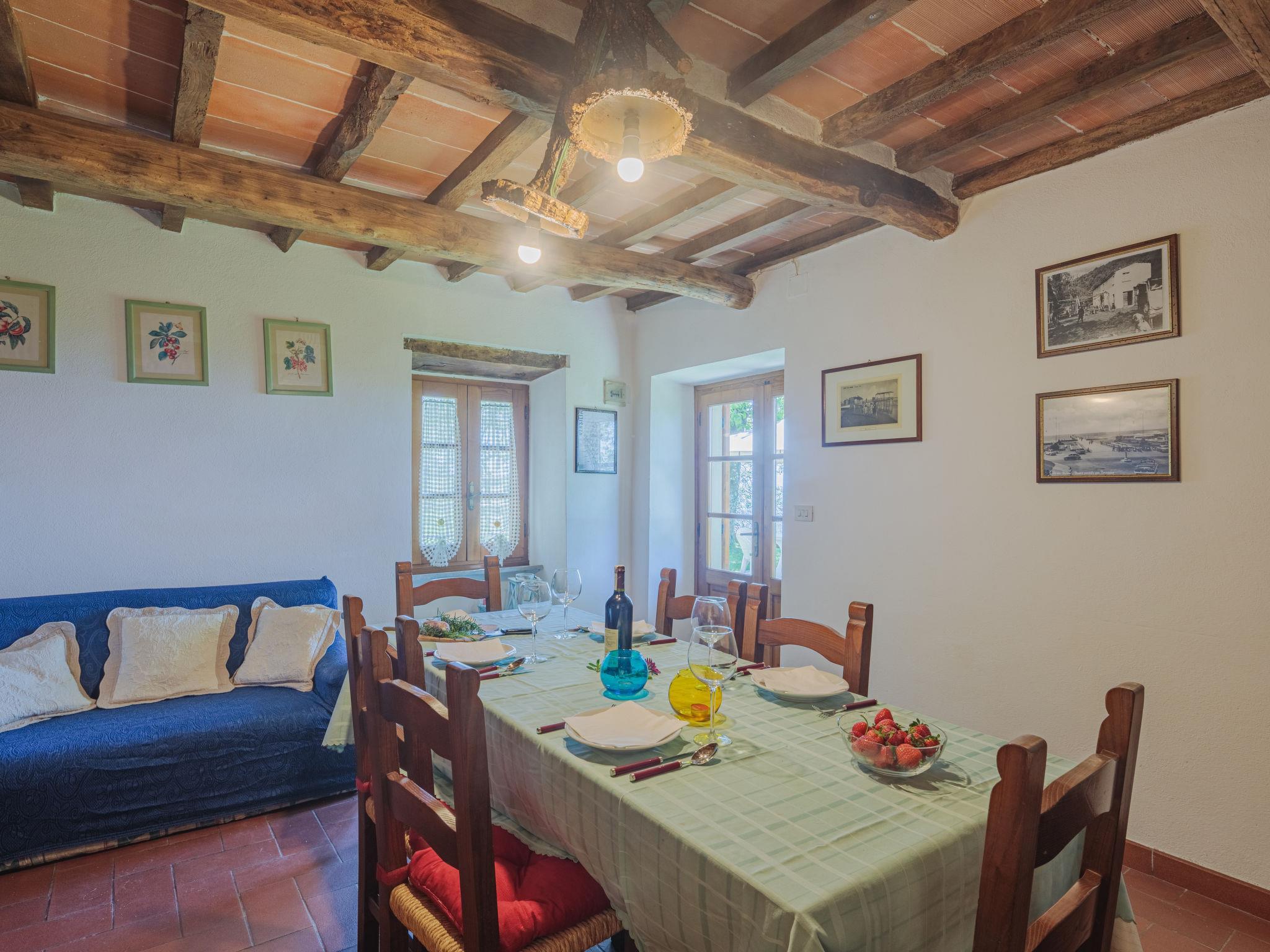 3-room semi-detached house 80 m2 on 2 levels. Practical and rustic furnishings: living/dining room with open-hearth fireplace, dining table and satellite TV (flat screen). Exit to the garden. Open kitchen (oven, 4 gas rings, toaster, kettle, microwave, freezer, electric coffee machine) with dining table. Upper floor: (steep stair) walk-through room with 1 french bed (160 cm). 1 room with 3 beds (80 cm). Shower/bidet/WC. No heating option. Terrace, porch. Terrace furniture, barbecue, deck chairs (4). Beautiful panoramic view of the countryside, the ocean and Riviera della Versilia. Facilities: washing machine, iron, children's high chair, baby cot for up to 2 year olds, hair dryer. Internet (WiFi, free). Parking (2 cars) at the house. Please note: non-smokers only. Smoke alarm, fire extinguisher. Additional bathroom with shower/WC only accessible from outside on garden side. IT045011C29EVV3NG5