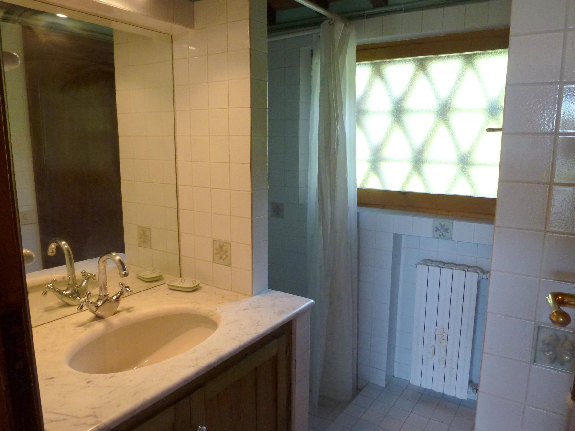 Features: The living area is 130 m². On the ground floor there is the typical Tuscan kitchen with dishwasher, the dining room with large window front, the large living room with fireplace, and a bathroom with shower. The wooden staircase leads to the first floor (with wooden floor). On the first floor there is a double bedroom with en-suite bathroom, a bedroom with bunk beds, a bedroom with 2 single beds or a double bed on request, a bathroom with bathtub.