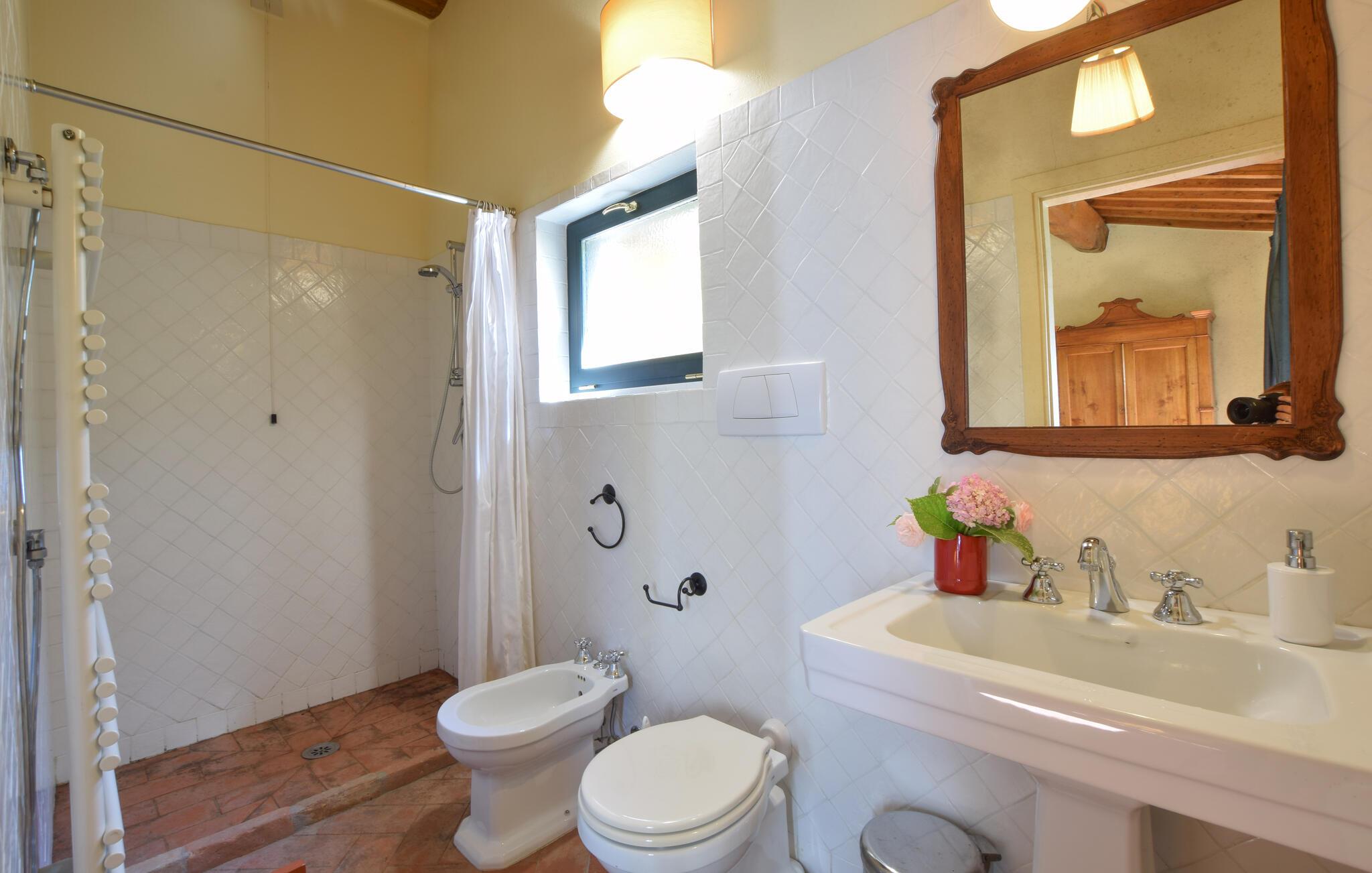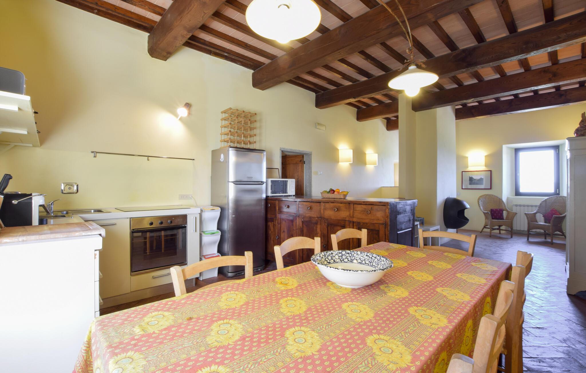 Dieses typisch toskanische Steinhaus verspricht Ihnen einen Urlaub vom Feinsten. Genießen Sie den historischen Charme, den dicke Natursteinmauern, charaktervolle Holzbalken und die rustikale Einrichtung ausstrahlen. Verbringen Sie entspannte Abende beim Plaudern oder probieren Sie in der modern ausgestatteten Küche toskanische Rezepte aus.