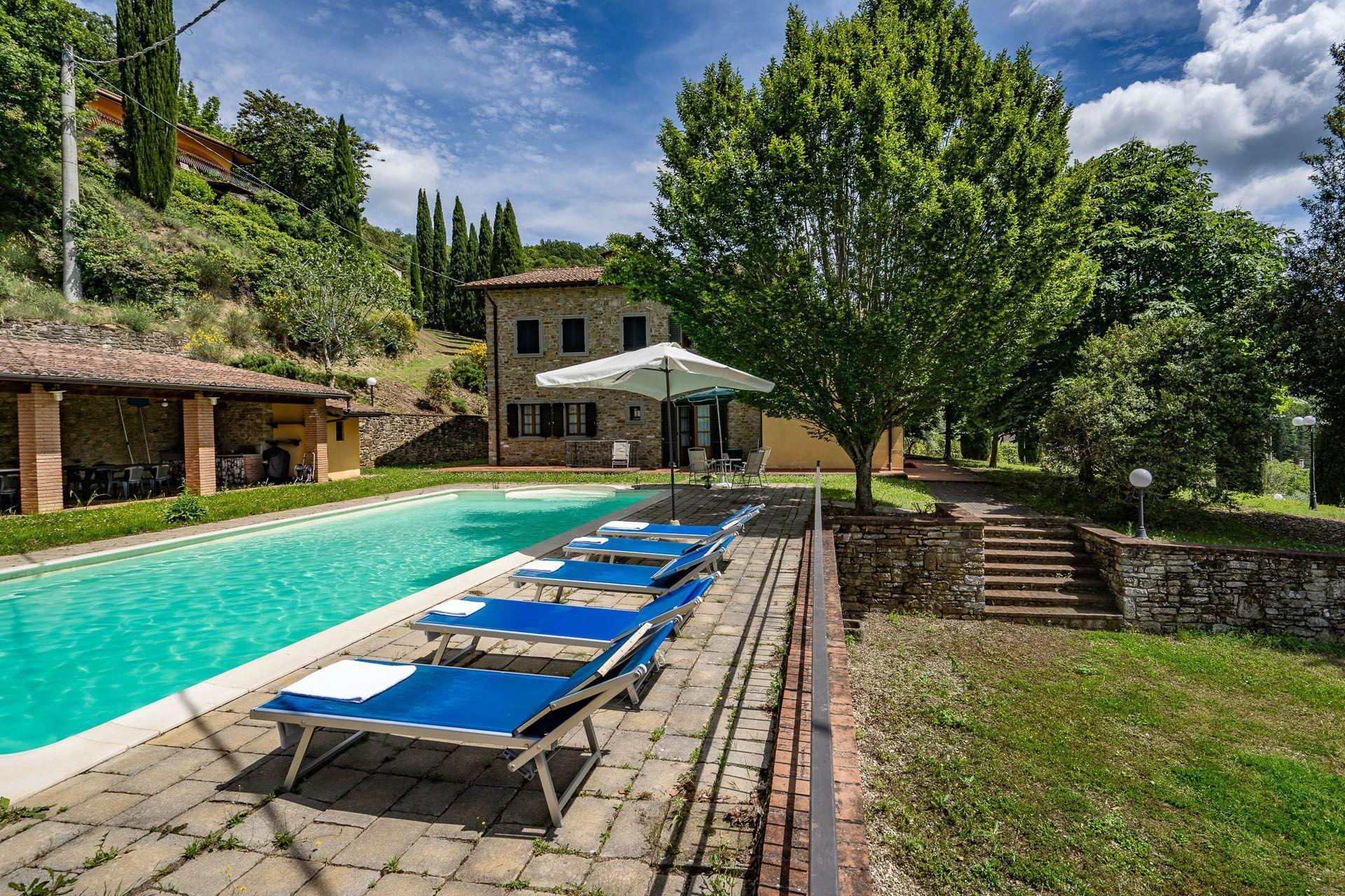 This beautiful stone farmhouse is located in the hills between Casentino and Valtiberina, just 12 km from Arezzo. Surrounded by greenery, Tenuta Le Caselle can accommodate up to 9 people. The large garden hosts a splendid swimming pool (12x6 m) equipped with sunbeds and umbrellas open from June to October.