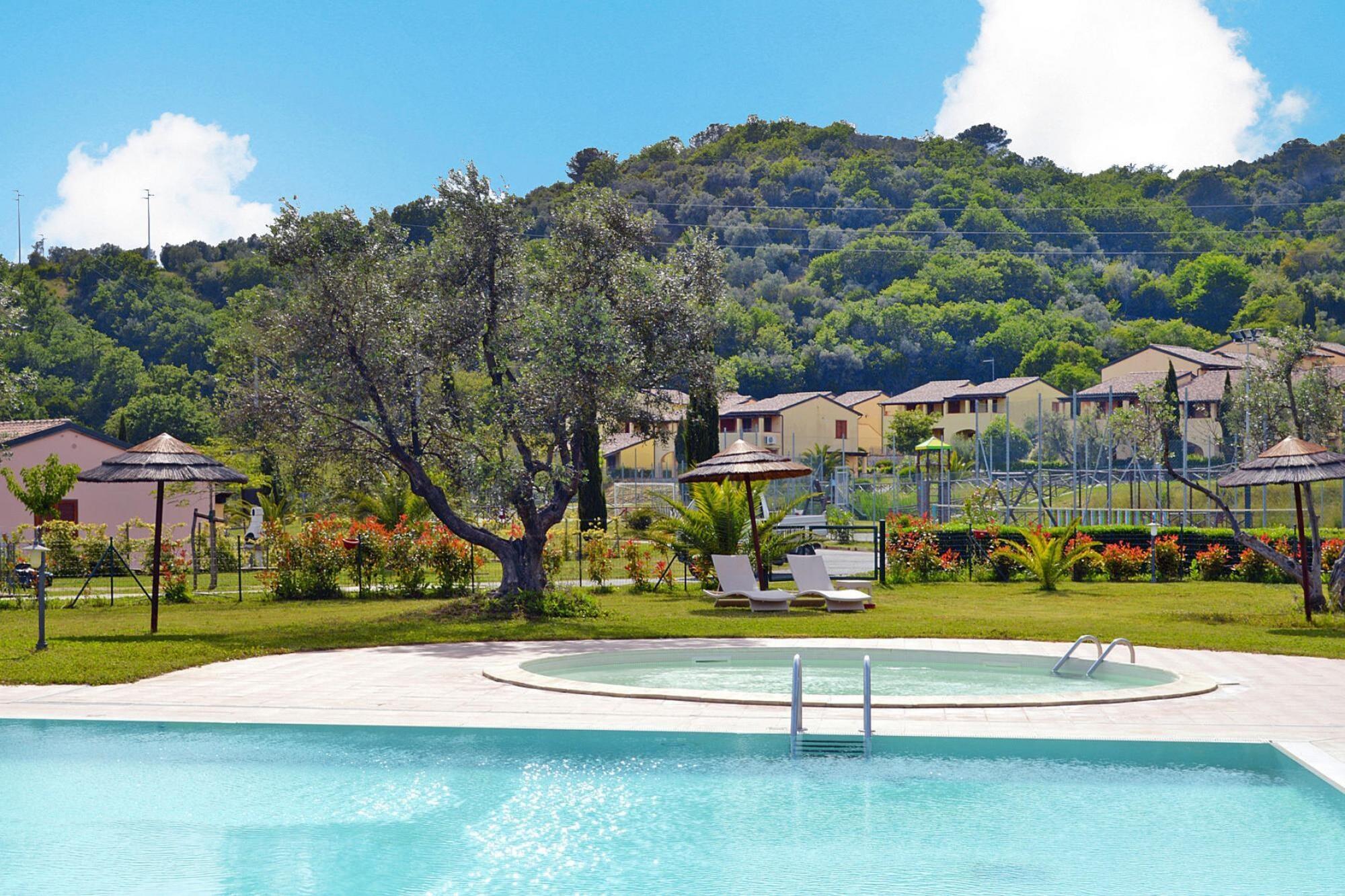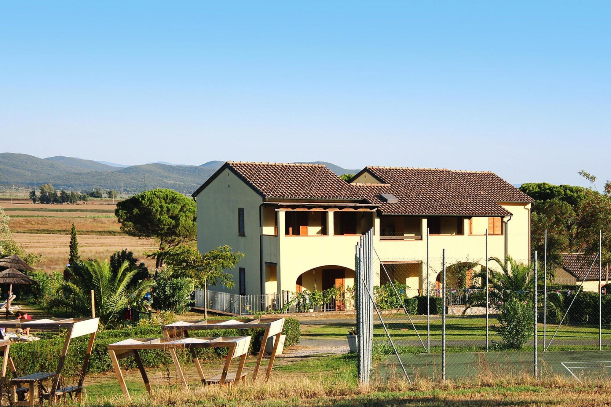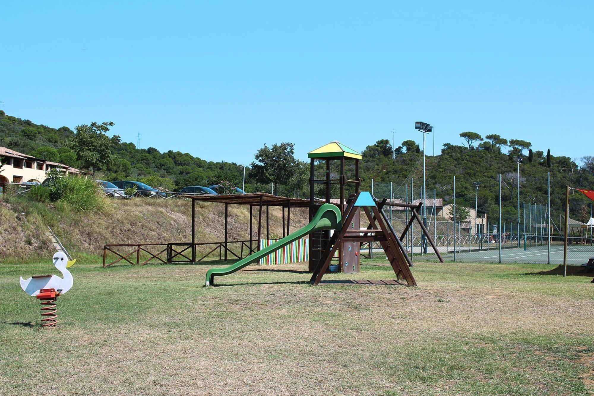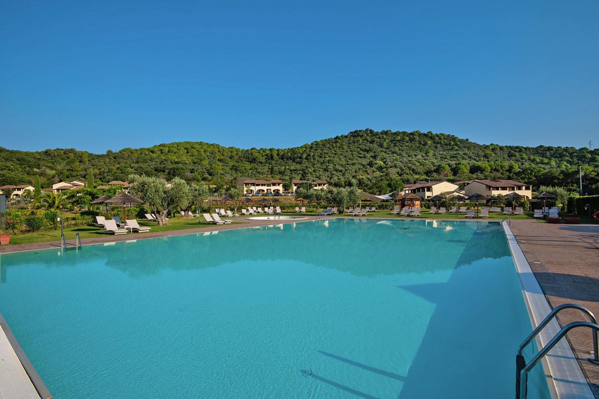 Located on the edge of the forest and on the edge of a hill: apartments in two-storey terraced houses, surrounded by a spacious, well-kept garden and children's playground. A fantastically large communal pool is also part of the complex. The spacious apartments are comfortably furnished in Tuscan style, and you can enjoy your meals outdoors on the balcony or terrace. The pool complex with separate children's pool is surrounded by lawns, sun loungers and parasols - simply ideal for relaxing! For those who are more active, there is a tennis court (for a fee), football pitch and table tennis. A pool bar and a restaurant (open from mid-May to the end of September) with a terrace provide refreshments and good food. Kids club from 4 years (June 28th - August 31st). An ideal starting point for a beach holiday and to explore the stunningly beautiful surroundings. Suvereto is located on a hill north of the valley of the Cornia River, less than 15 kilometers from the sea. Discover the well-preserved medieval old town, above which the remains of a medieval castle tower. Note: WiFi only outdoors Activities nearby: Visit Campiglia Marittima, the town with its well-preserved medieval town attracts many visitors. The good location on a small hill offers a great view of the Mediterranean. You should also try the fresh products from Tuscany - the numerous farms in the surrounding villages supply the region with delicious specialties and very good olive oil from their own production.