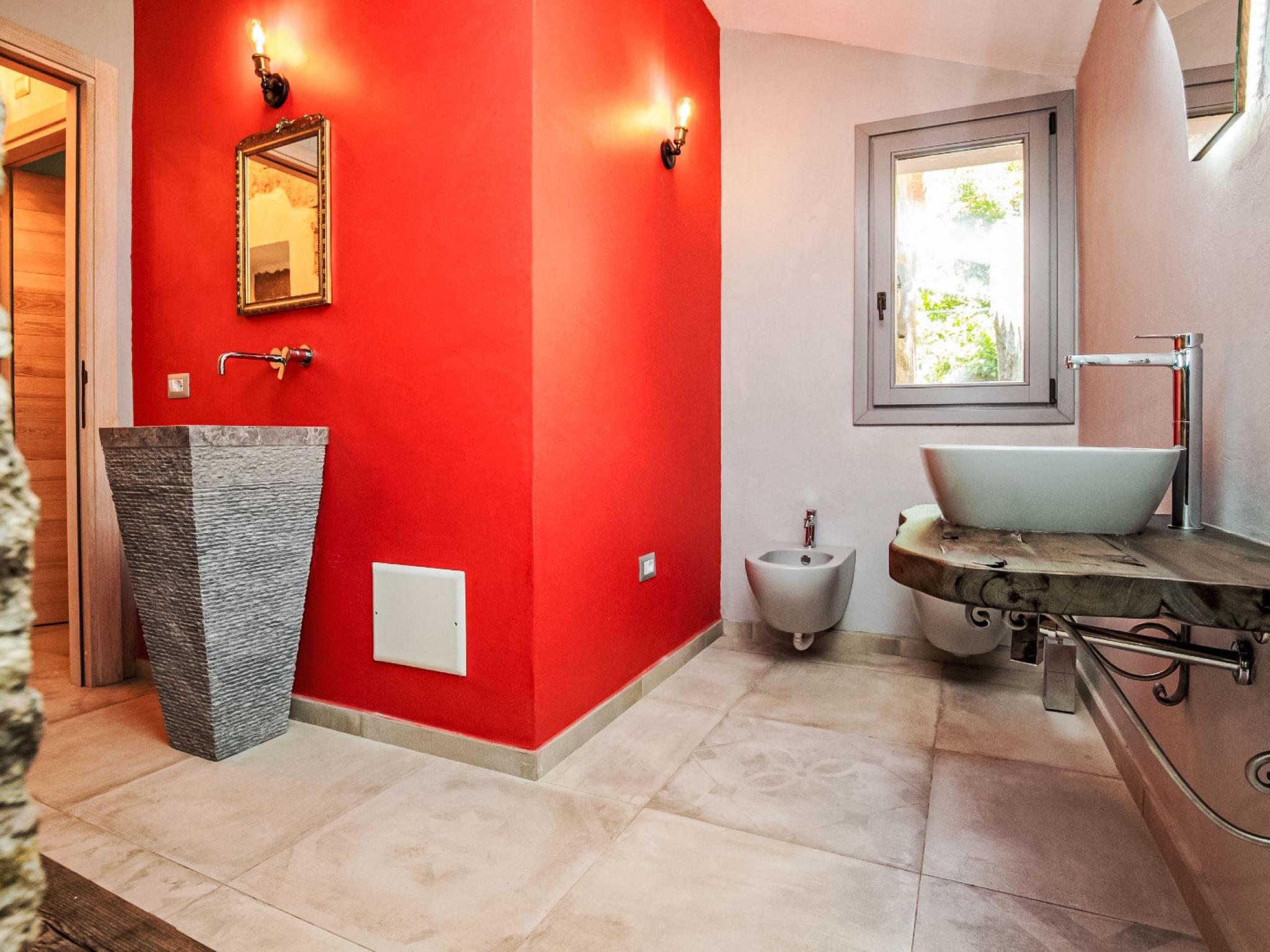 Rustic, comfortable country house "Monti di Sarra". Property composed of main house and outbuilding, 5 km from the centre of Calangianus, in a secluded, quiet, elevated position on top of a hill, 45 km from the sea, 45 km from the beach. For shared use: large garden plants and trees, meadow 2'000 m2, swimming pool (14 x 6 m, depth 150 cm, seasonal availability: 01.Apr. - 31.Oct.) with shutter cover and salt-electrolysis pool-cleaning system. Outdoor shower, pool maintenance by the owner/gardener. In the house: washing machine, tumble dryer. Motor access to 30 m from the house. Parking at the house. Grocery 6 km, supermarket 6 km, bakery 6 km, bus stop 7 km, sandy beach "Pittulongu" 45 km. Riding stable 15 km, sports centre 15 km. Nearby attractions: Olbia 45 km, Costa paradiso 42 km, Alghero 113 km, Santa Teresa 50 km, Palau 49 km. Please note: car recommended. Residence with electric gates. Animals in the neighbourhood. The tap water has no drinking water quality.