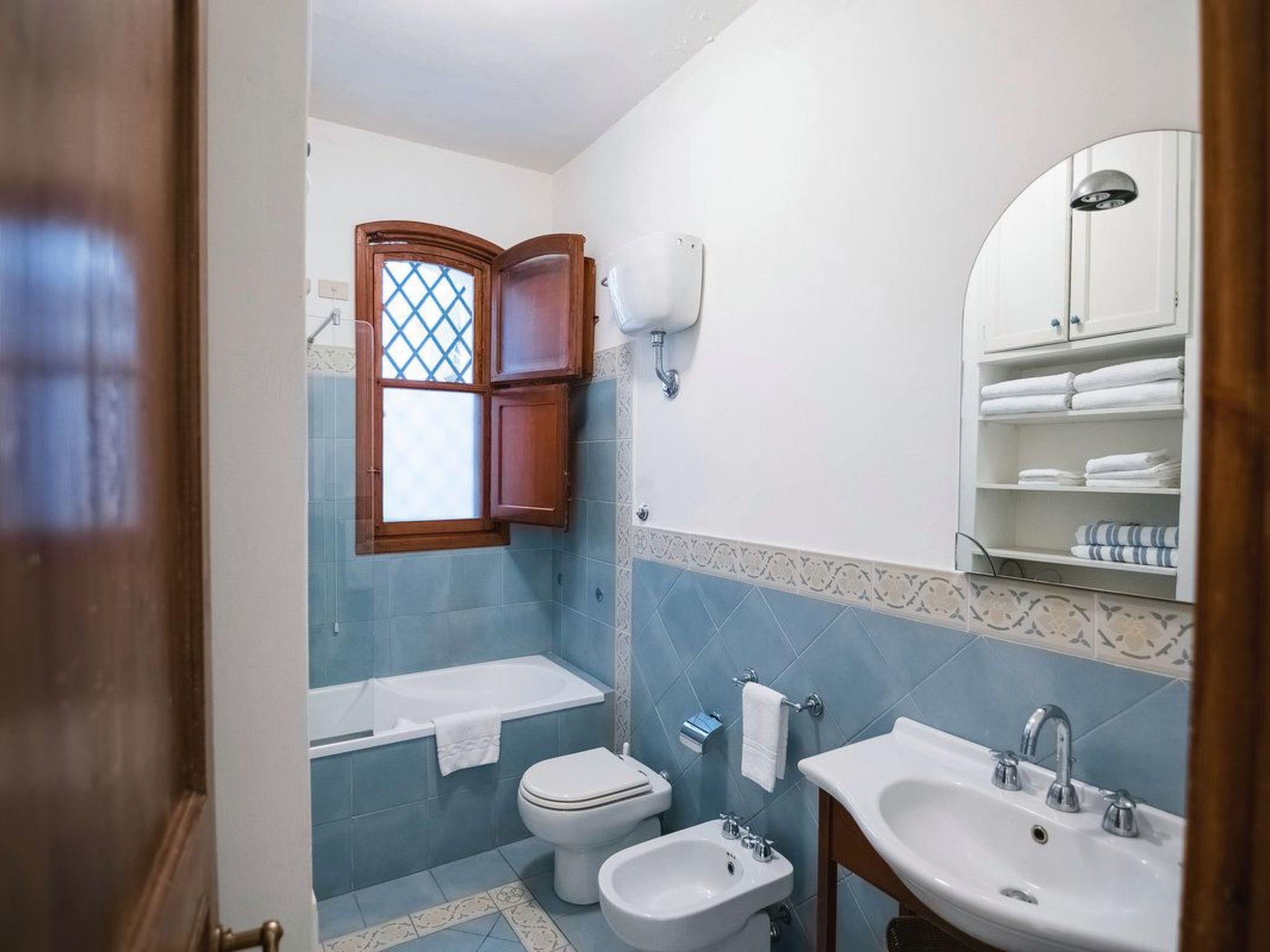 All'interior, the'appartamento si distingue per la sua atmosfera luminosa e invitante, arricchita da mobili di famiglia che aggiungono un tocco di intimità. La casa dispone di un soggiorno ampio con zona pranzo e salotto, perfetto per momenti conviviali, oltre a una sala lettura o studio con scrivania e connessione Internet per chi necessita di lavorare o studiare durante il soggiorno. Le opzioni di alloggio comprendono una camera con letto matrimoniale, una con due letti singoli, e una terza cameretta con letto a castello. La cucina è moderna e completamante attrezzata, inclusa di lavastoviglie e frigorifero, mentre per maggiore comodità sono disponibili due bagni, uno con vasca e l'other with shower and washing machine, and a practical storage room. L'isolamento moderno unito ai tradizionali muri in pietra assicura un ambiente fresco anche durante l'summer, with fans available in the bedrooms.