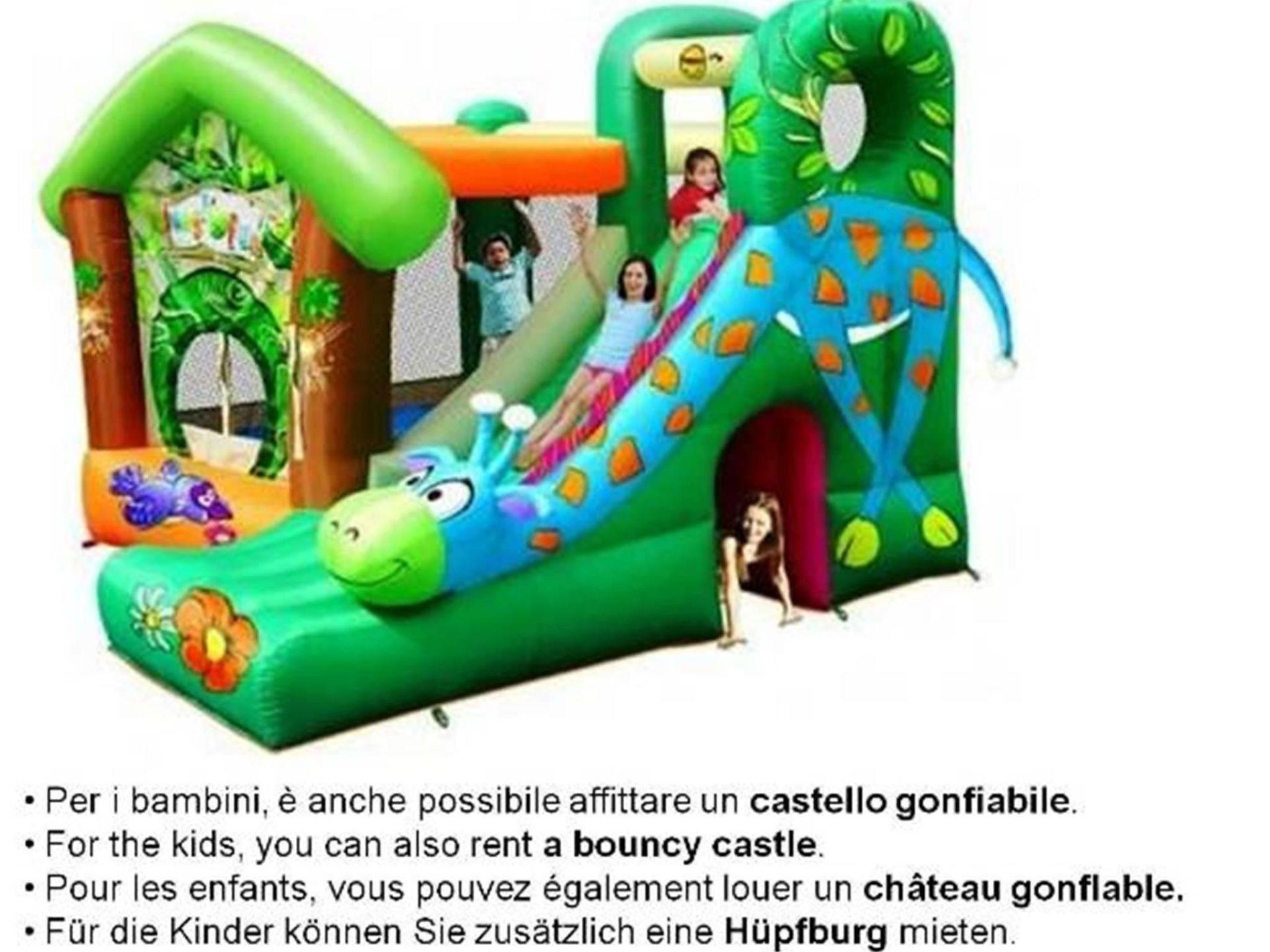 In the outdoor area, i.e. in the park-like garden, the house offers many possibilities for families with children or groups: Whether a large barbecue with a vine arbour and corresponding seating, a covered terrace, an antique pizza oven or, for refreshment, the large pool. While you relax, the children can play in the children's playground with tower, slide and swing or in the other children's playground with sandpit, Indian tent and seesaw.