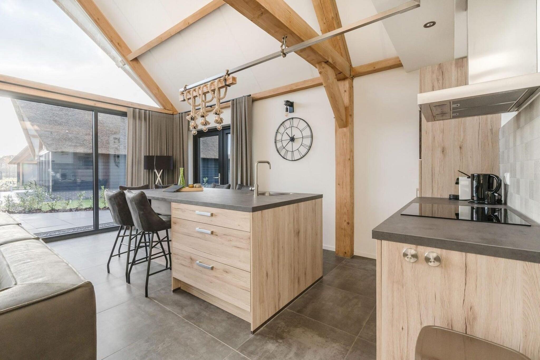 Tucked away in the peaceful Parc de Kievit in Baarle-Nassau, near the Dutch-Belgian border, this thatched luxury bungalow invites you to slow down and savour the simple beauty of the countryside. Just a short drive away, you can tee off at the scenic 18-hole golf course at Landgoed Utrecht in Esbeek, wander through the charming streets of Tilburg, or experience the fairytale world of Efteling — one of Europe’s most beloved theme parks. The surrounding woods are perfect for long walks or cycling adventures, and the park itself offers plenty of space to breathe, relax, and reconnect. Inside, the home exudes both warmth and sophistication. The spacious living room, bathed in natural light from large windows, feels instantly welcoming. The open-plan kitchen, complete with a cooking island, Nespresso machine, ceramic hob, combi microwave, fridge-freezer, and dishwasher, makes dining together a pleasure. Every corner feels thoughtfully designed for comfort, while air conditioning ensures the perfect atmosphere in every season. On the ground floor, two serene bedrooms and a modern bathroom with shower and bath offer a restful night’s sleep. Upstairs, a cozy master suite with en-suite bathroom adds an extra touch of privacy. You’ll also find a laundry room with a washing machine and dryer, plus a sustainable heat pump boiler that keeps your stay environmentally friendly. Step outside to the spacious terrace overlooking a tranquil pond — a perfect spot to sip your morning coffee or unwind under the stars. With private parking for two cars and every comfort within reach, this charming retreat blends luxury, nature, and homelike warmth into one unforgettable stay.