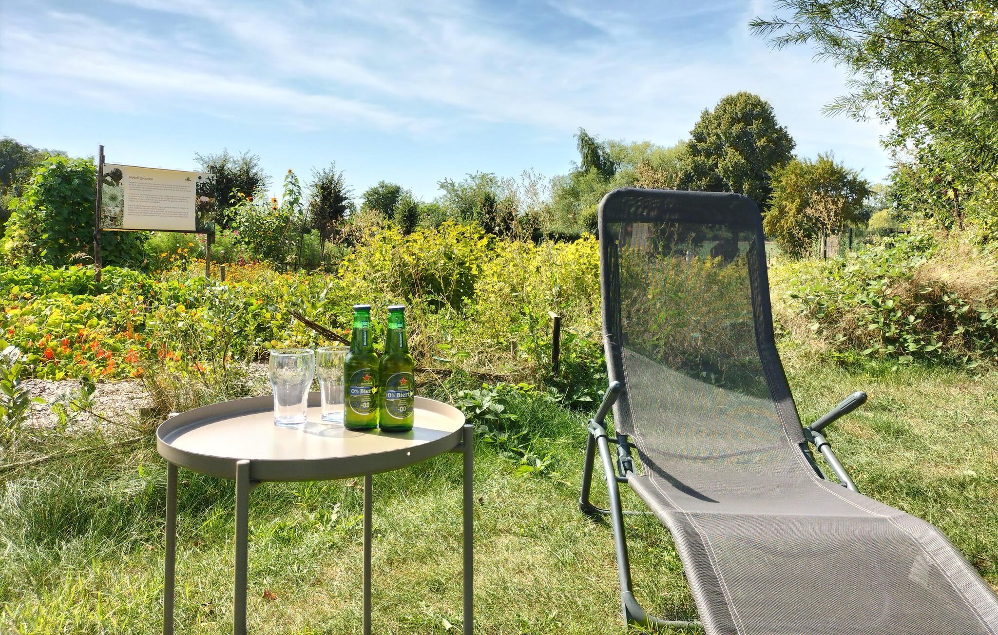 Genießen Sie Ihr Frühstück auf der großzügigen Terrasse, während Ihre Kinder im Garten spielen oder Kräuter für das Abendessen pflücken. Oder lassen Sie auf den Liegestühlen die Seele baumeln. Das Grundstück grenzt an einen kleinen, sehr ruhigen Campingplatz.