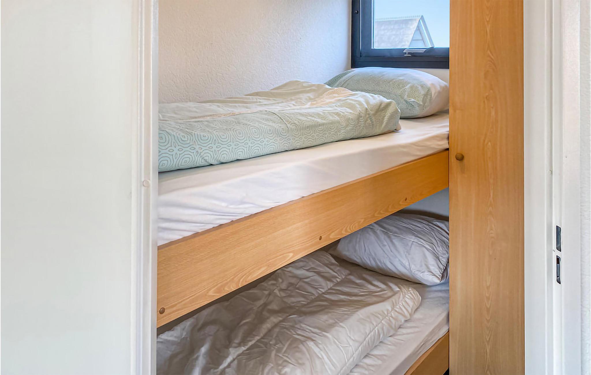 Mit 2 Schlafzimmern bietet das Haus Platz für 4 Personen, 2 Haustiere sind im Urlaub erlaubt. Die Einrichtung des Ferienhauses ist gemütlich und funktionell, und Sie finden hier alles, was Sie für einen gelungenen Urlaub brauchen. Ein Schlafzimmer hat ein Etagenbett, das andere hat 2 Einzelbetten.