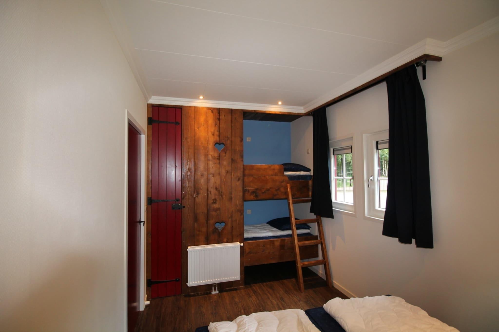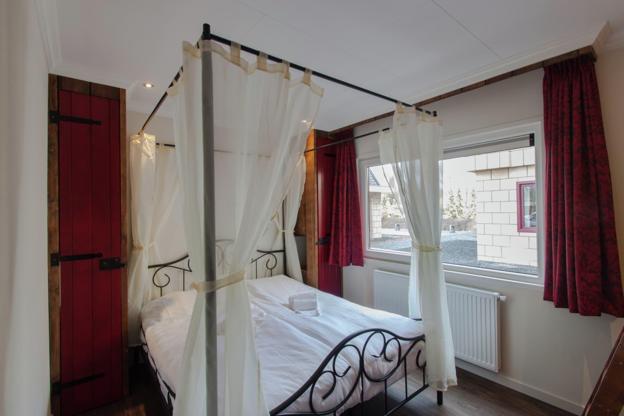 For a royal stay, Residence de Eese offers several types of group accommodation. You can choose between the 18-person type called Eeserburcht and the 28-person type called Kasteel de Eese. The Eeserburcht type consists of two parts in an elevated position on the edge of the park, offering a direct view of the holiday park's freely accessible tennis courts. The 'living fortress' is a large, superbly comfortable space with a unique royal theme. This atmosphere is reinforced by the unique handmade round sofas and the well equipped kitchen that features, among other things, an American refrigerator and an ice cream maker. The beautiful, long French wine table is eminently suited for long dinners where everyone can get together. This building also features two bedrooms, a bathroom and a separate toilet. The 'sleeping fortress' is a separate building with three bedrooms + three best well-equipped as and two bathrooms. Kasteel de Eese type is equally comfortable and even consists of three parts: a 'great hall' and two 'sleeping fortresses'. Naturally, the great hall features a spacious, attractively furnished living room with a fully fitted kitchen and a cooking island. Again, the long dining table is a real eye-catcher! In contrast to the Eeserburcht, all bedrooms are in the other two buildings. Each sleeping fortress houses three bedrooms + three bedsteads and two bathrooms. These sleeping accommodations also include a King's Room, a Queen's Room and a Princess Room. Both types feature a beautiful terrace with enough garden furniture to seat everyone! For groups with a different composition than family, a deposit of 1000 euros is requested.