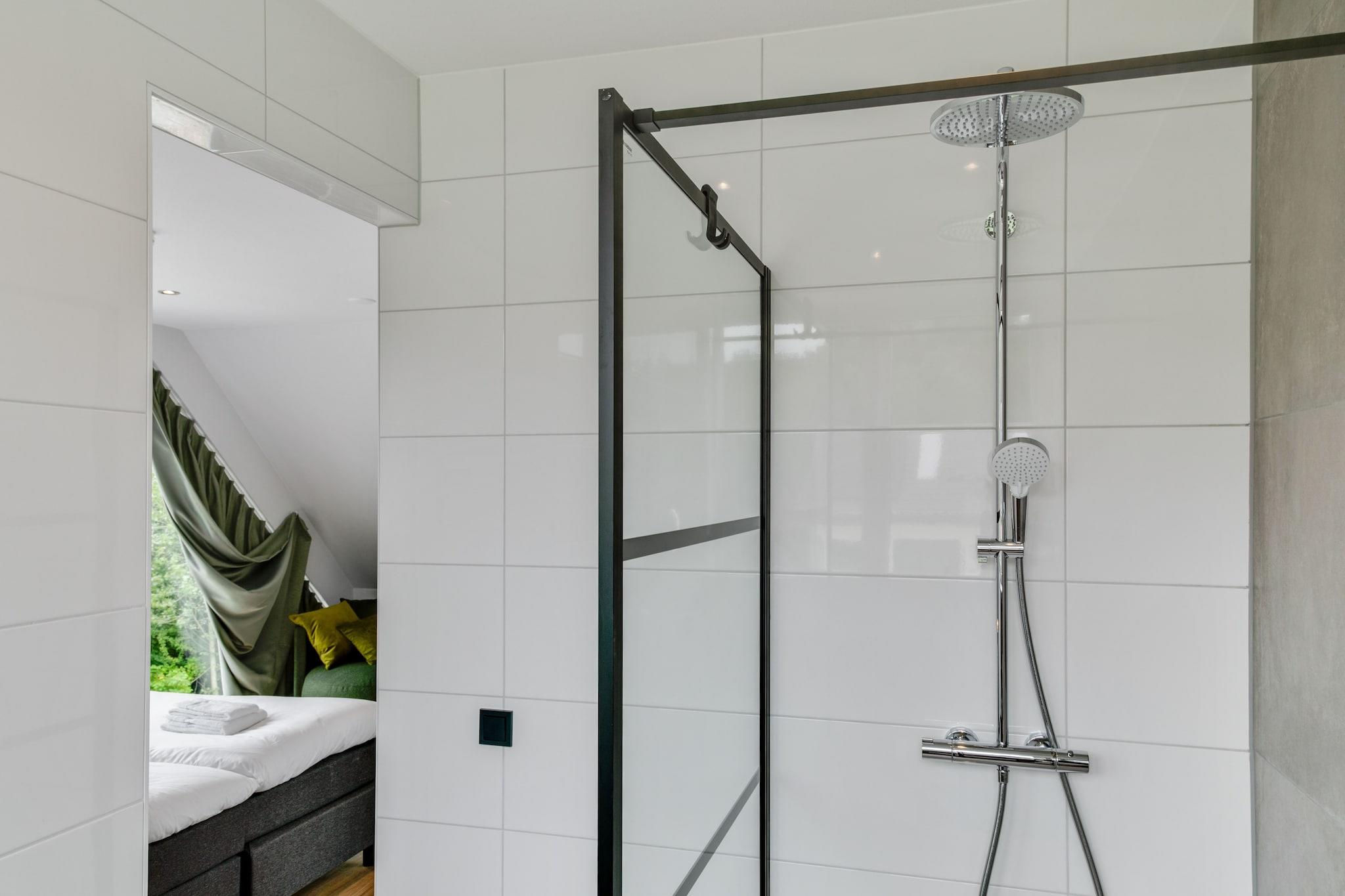 Ground floor: (open kitchen(hob(induction), electric kettle, toaster, coffee machine(cups, filter), combination microwave, dishwasher, fridge-freezer, Juicer), Living/diningroom(TV(flatscreen, smart TV), dining table(6 persons), seating area(6 persons)), Bedroom with bathroom(single bed(boxspring, 90 x 210 cm), single bed(boxspring, 90 x 210 cm), shower(walk-in shower)), toilet) On the 1st floor: (bedroom(single bed(boxspring, 90 x 210 cm), single bed(boxspring, 90 x 210 cm), shower, sauna, toilet), Bedroom with bathroom(single bed(boxspring, 90 x 210 cm), single bed(boxspring, 90 x 210 cm), massage shower, sun shower, toilet)) sauna, storage(tumble dryer, washing machine), terrace, garden, garden furniture, sun loungers, parking, children's bed, high chair, Charging post for electric cars