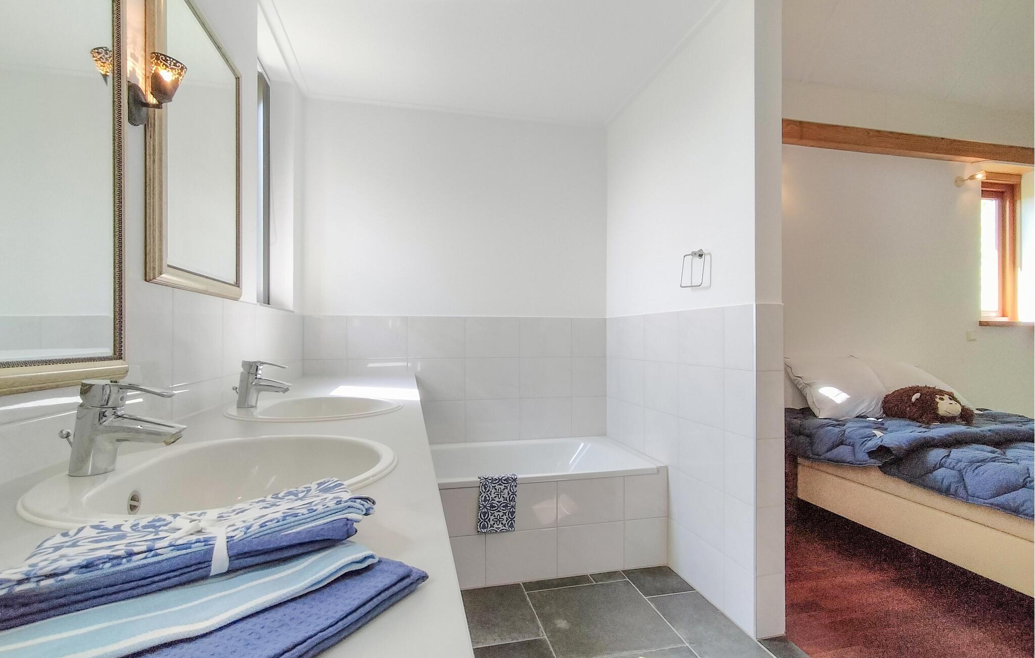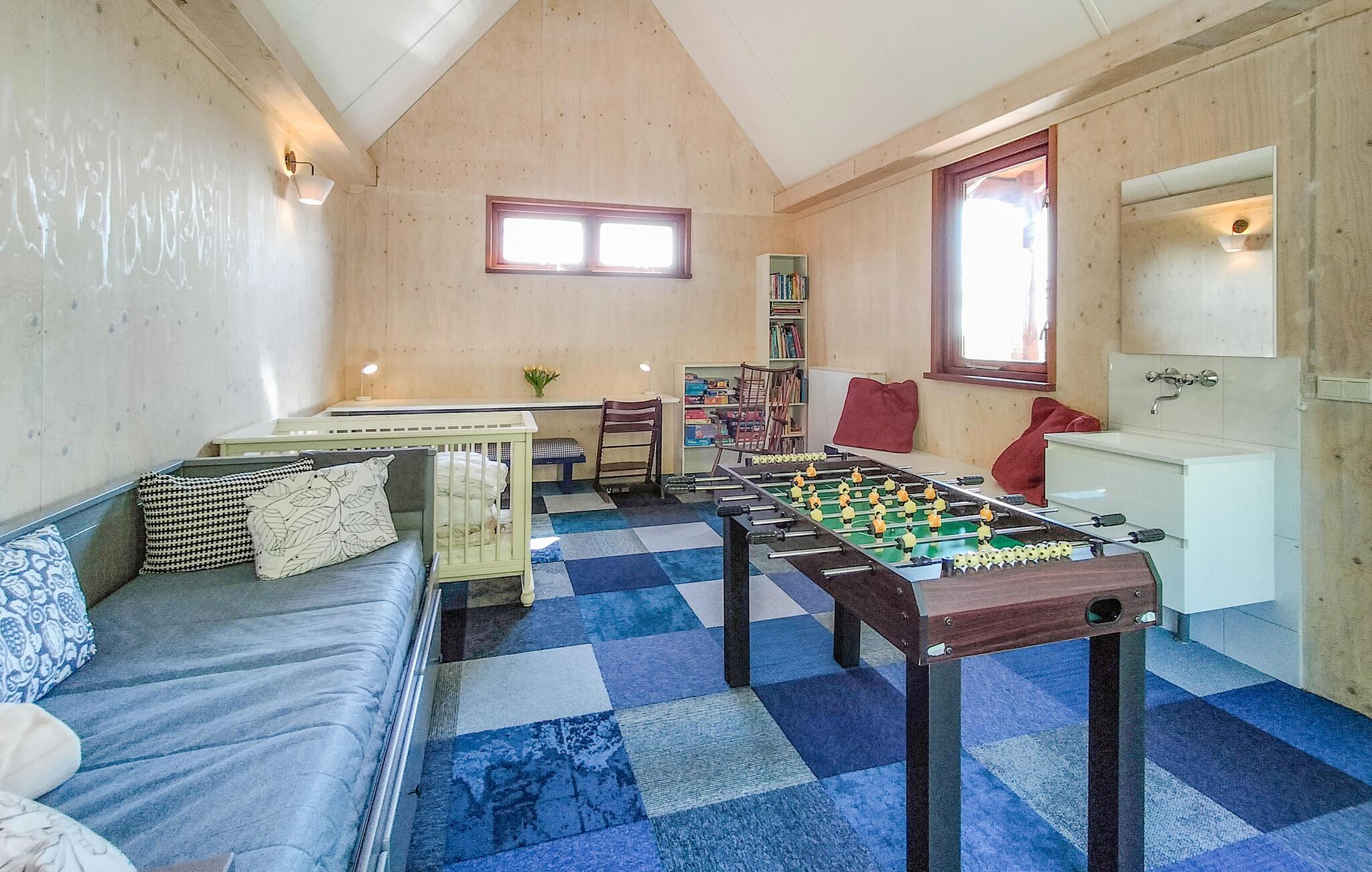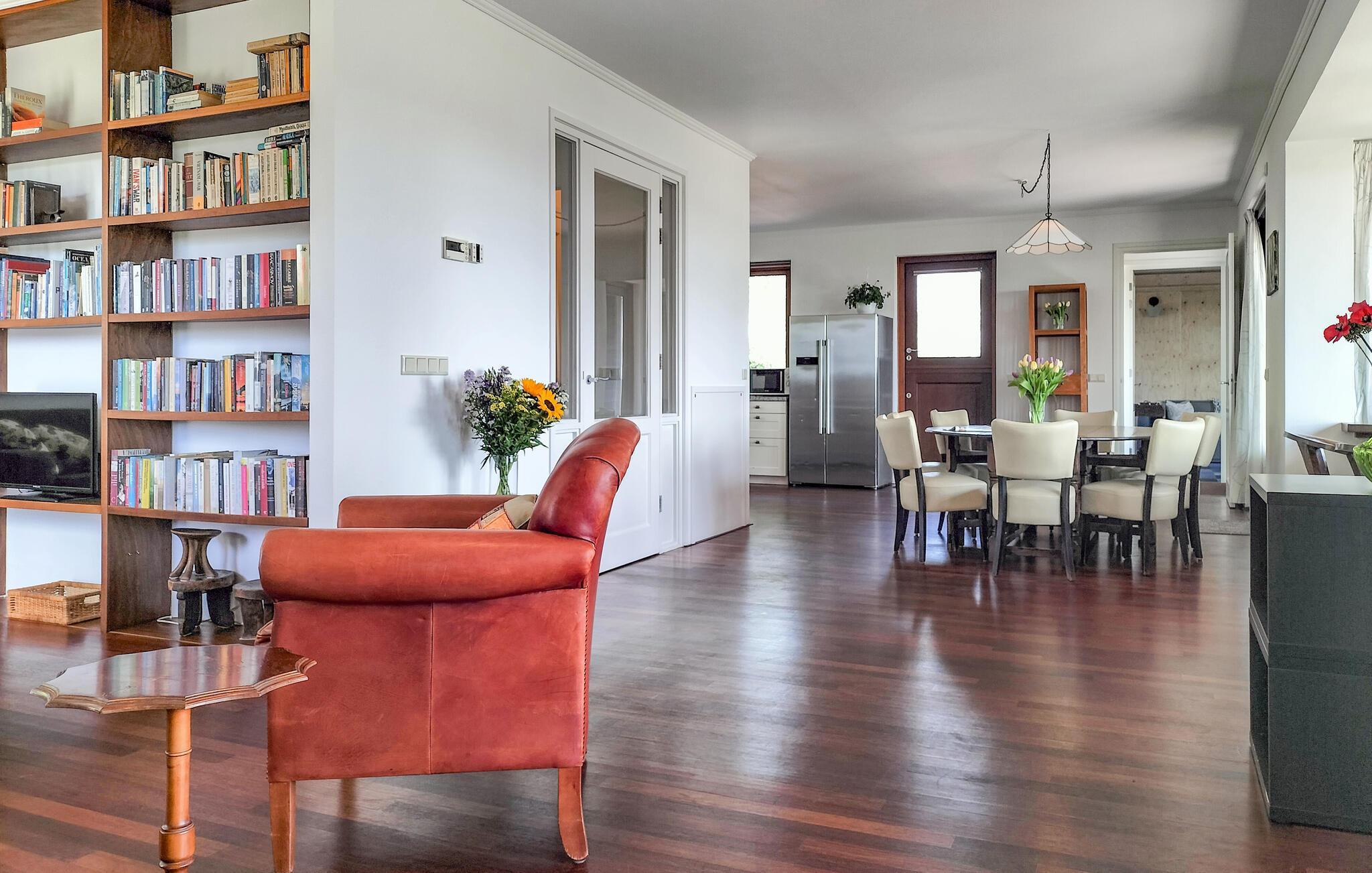 Dieses großzügige Haus empfängt Sie mit warmem Holzboden, geschmackvoll möblierten Räumen und einer ruhigen Atmosphäre umgeben von weitläufigen Pferdewiesen und unweit der Küste. Wer möchte, wirft gleich den Kaminofen an und nimmt sich ein Buch aus dem Regal. Starten Sie mit einem guten Gespräch in den Abend und bereiten Sie leckere Gerichte in der modernen Küche zu. Fordern Sie Ihre Mitreisenden zu einer Runde Tischfußball heraus und stoßen Sie danach auf den Sieg an. Das Haus bietet viel Platz und angenehme Rückzugsorte.
