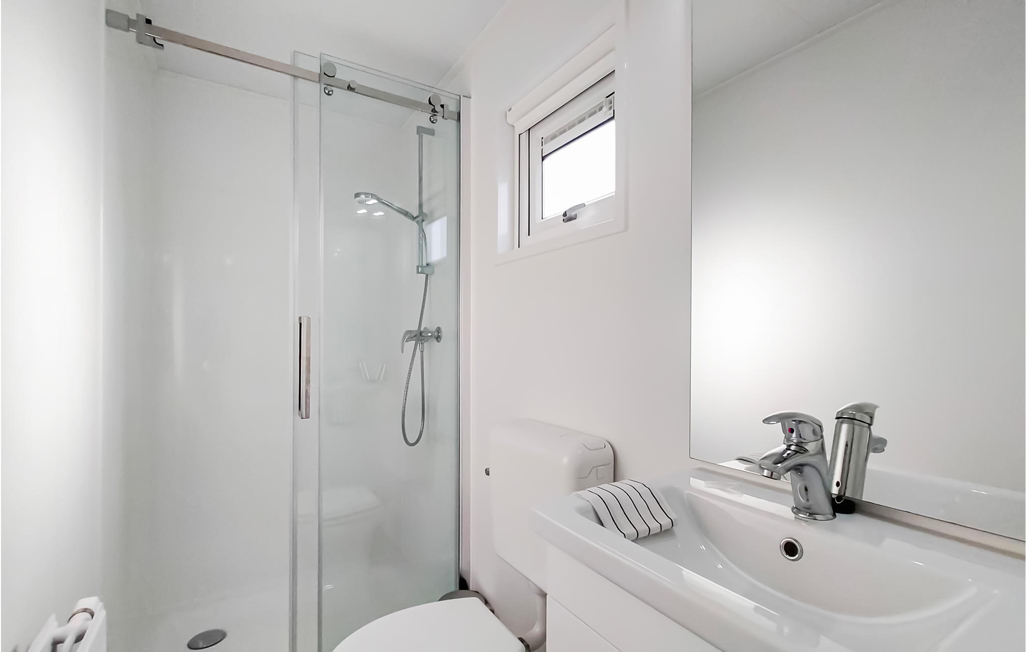 - WC mit warmem und kaltem Wasser, Dusche