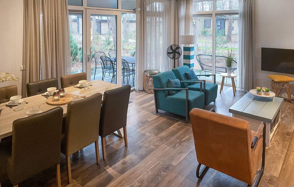 Beginnen Sie Ihren Tag mit einem ausgiebigen Familienfrühstück am stilvollen Esstisch oder auf der überdachten Terrasse, wo Sie die Aussicht auf die umliegende Natur genießen können. Die moderne und komfortable Einrichtung des Wohnbereichs lädt dazu ein, es sich auf dem Sofa gemütlich zu machen und einen entspannten Tag zu verbringen. Schauen Sie einen Film, spielen Sie lustige Gesellschaftsspiele oder unterhalten Sie sich über die Pläne für Ihre Urlaubsaktivitäten.