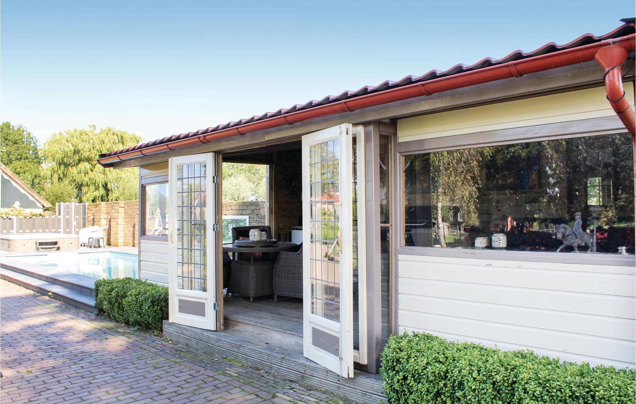 Das Anwesen, auf dem sich das Ferienhaus befindet, hat mehrere Terrassen, von denen aus man den Blick auf ausgedehnte Wasserlandschaft mit Enten und den schönen weißen Tauben, die frei über den Hof fliegen, genießen kann. Sie haben auch einen Blick auf die Weide mit Pferden und Ponys. An Sommerabenden können Sie bei einem Glas Wein auf der Terrasse am Wasser schöne Stunden verbringen. Auch bei wenig Wetter kann man draußen entspannen, die Veranda neben dem Pool verfügt über eine Außenküche mit mehreren Sitzplätzen, die Sie auf Anfrage als Gast nutzen können.