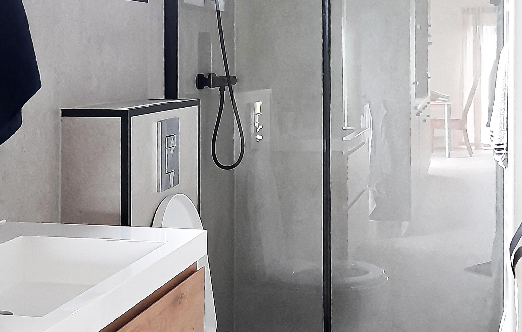 - WC mit warmem und kaltem Wasser, Dusche