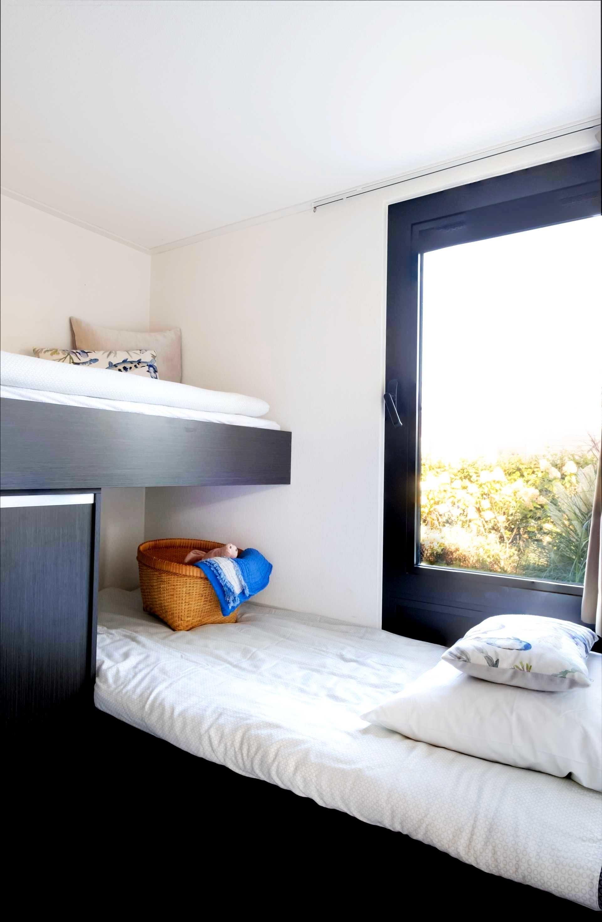 Im heimeligen Schlafzimmer mit Boxspringdoppelbett und direkten Zugang zum Bad und Ankleide, befindet sich ausserdem noch ein zweites Schlafzimmer auf der gegenüberliegenden Seite, ideal geeignet für Kinder (Etagenbett) oder Erwachsene, wo sich das zweite Badezimmer befindet. Über eine Treppe gelangt man dann zur Galerie, dort befindet sich das 3.Schlafzimmer - keine vollständige Stehhöhe (Kinder werden hier ihre Freude haben).