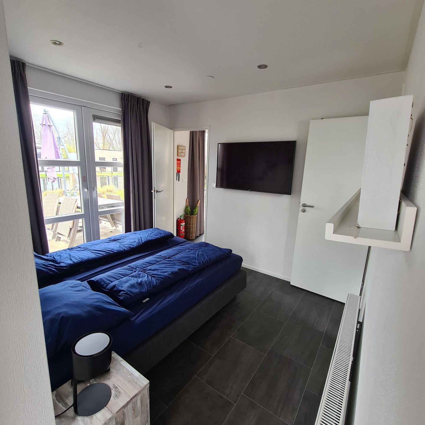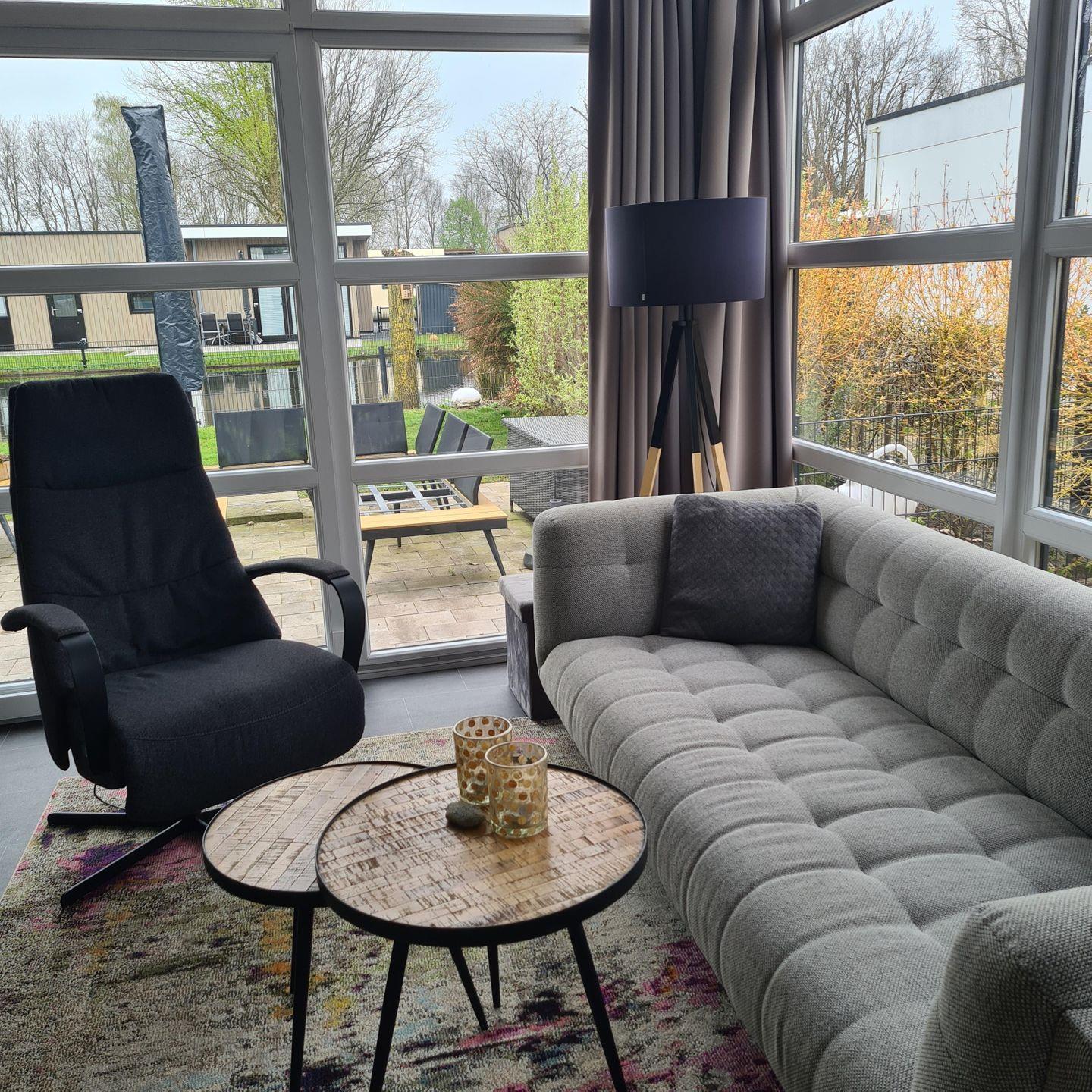 Modernes Chalet (70 m²) für bis zu 4 Personen im EuroParcs Bad Hoophuizen – nur wenige Schritte vom Wasser entfernt. Helles Wohnzimmer mit Grachtblick, 2 Schlafzimmer, Bad en-suite mit begehbarer Regendusche plus separates WC. Eingezäunter Garten, Terrasse mit Grill, SUP inklusive. Urlaub mit bis zu zwei Fellnasen willkommen!