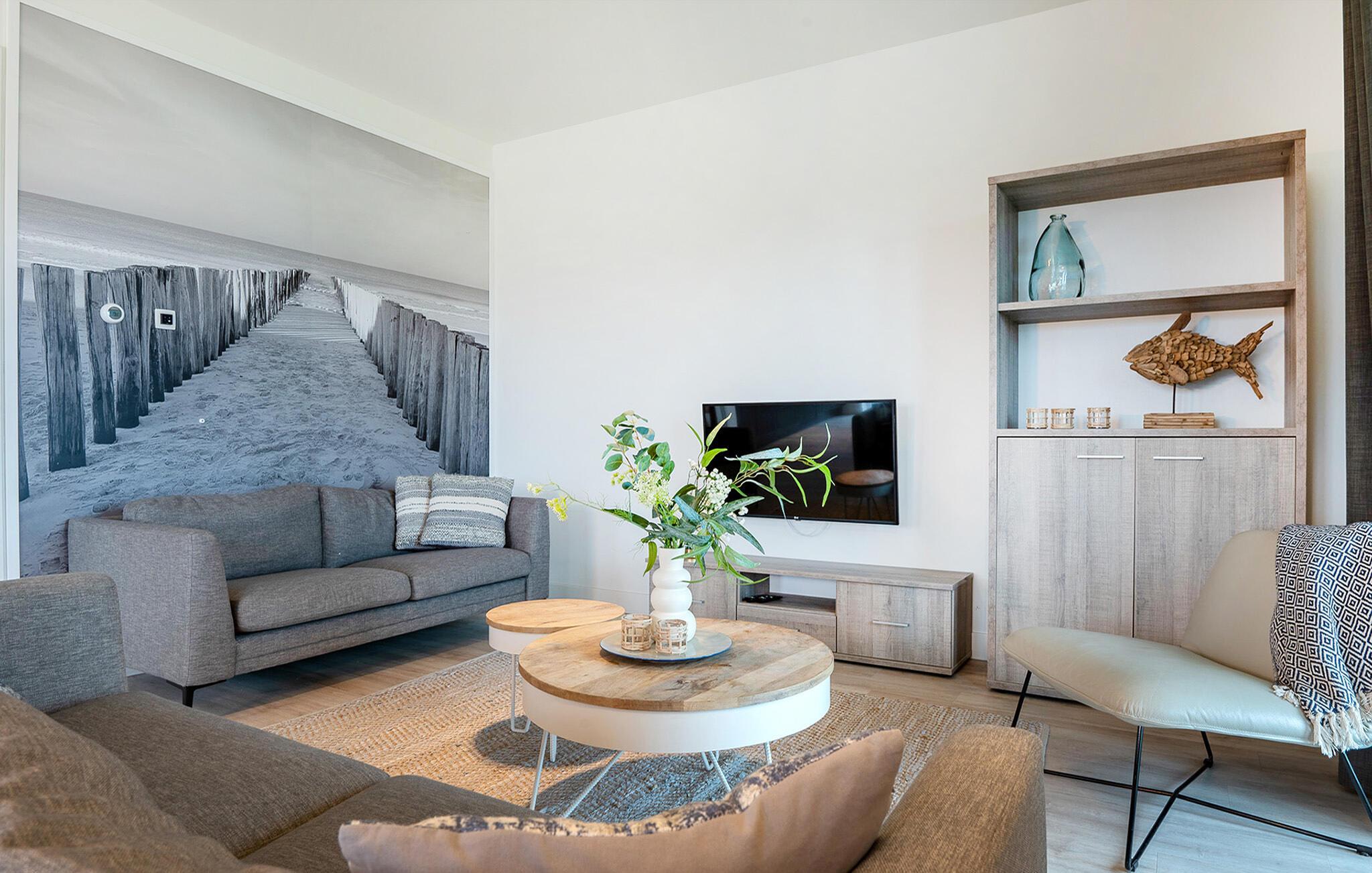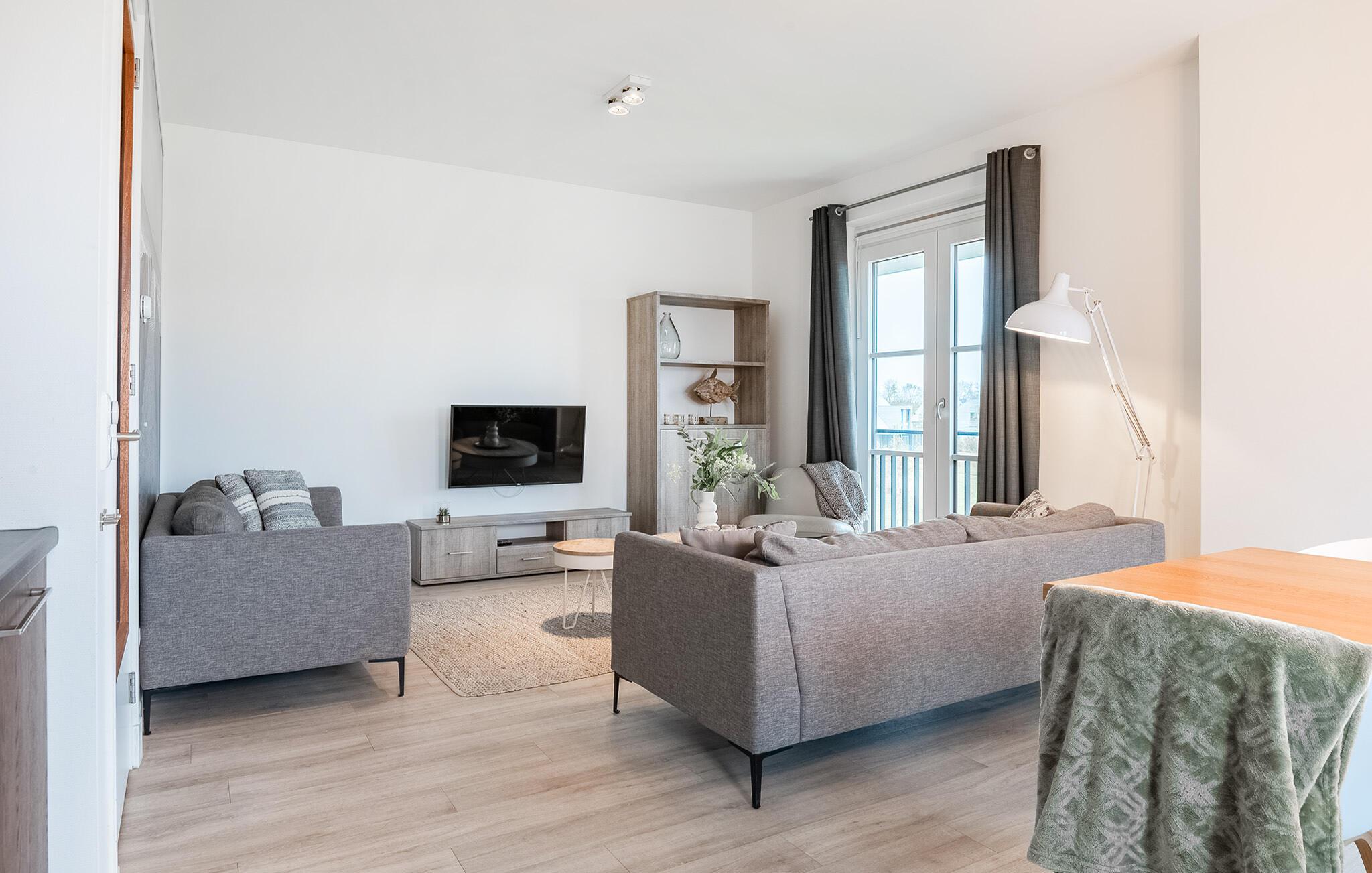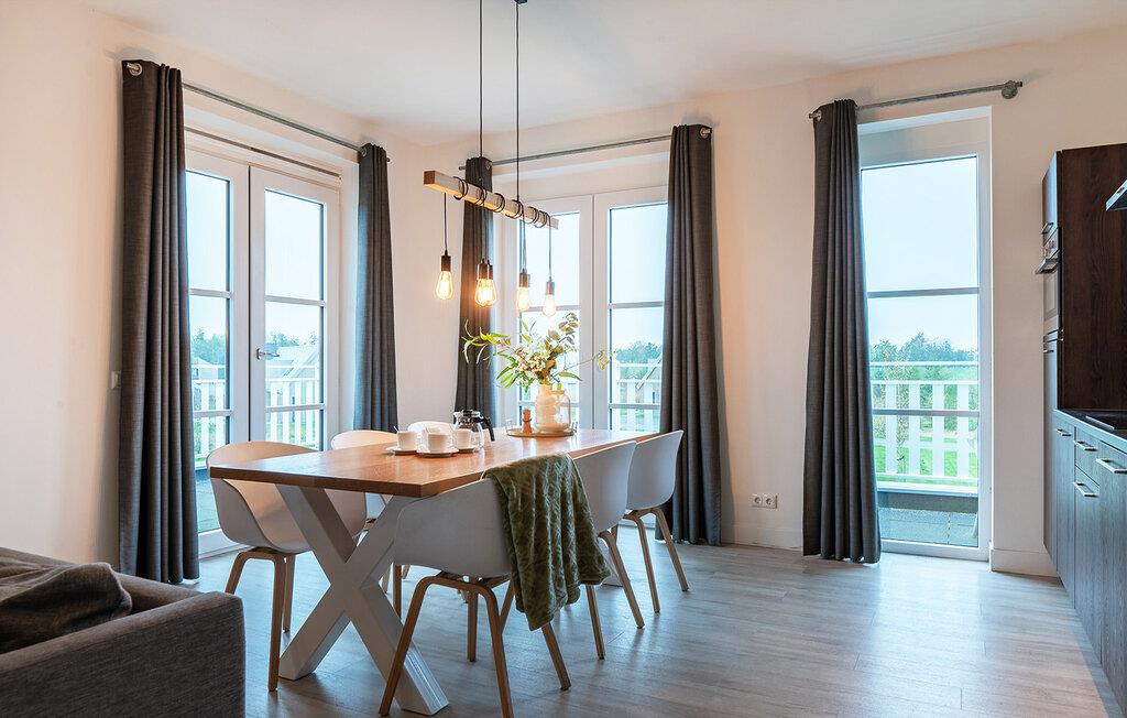 Diese moderne und luxuriöse Ferienwohnung in einem eleganten Apartmenthaus bietet Ihnen den perfekten Ort, um die Seele baumeln zu lassen. Die stilvolle Einrichtung und das helle, maritime Ambiente schaffen eine ruhige und einladende Atmosphäre. Hier haben Sie viel Platz, um sich mit Ihrer Familie oder Freunden wohlzufühlen. Kommen Sie im offenen Wohnraum zusammen, der die Küche sowie den Ess- und Wohnbereich gelungen miteinander verbindet und Sie zum gemeinsamen Kochen, Essen oder Ausruhen einlädt.