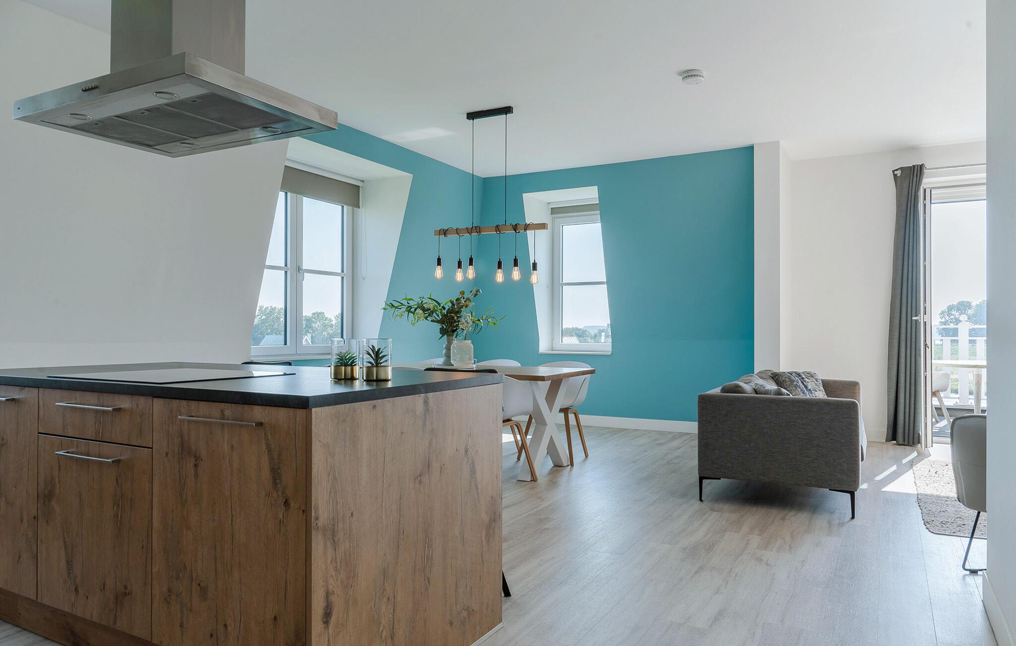 Diese moderne und luxuriöse Ferienwohnung in einem eleganten Apartmenthaus bietet Ihnen den perfekten Ort, um die Seele baumeln zu lassen. Die stilvolle Einrichtung und das helle, maritime Ambiente schaffen eine ruhige und einladende Atmosphäre. Hier haben Sie viel Platz, um sich mit Ihrer Familie oder Freunden wohlzufühlen. Kommen Sie im offenen Wohnraum zusammen, der die Küche sowie den Ess- und Wohnbereich gelungen miteinander verbindet und Sie zum gemeinsamen Kochen, Essen oder Ausruhen einlädt.