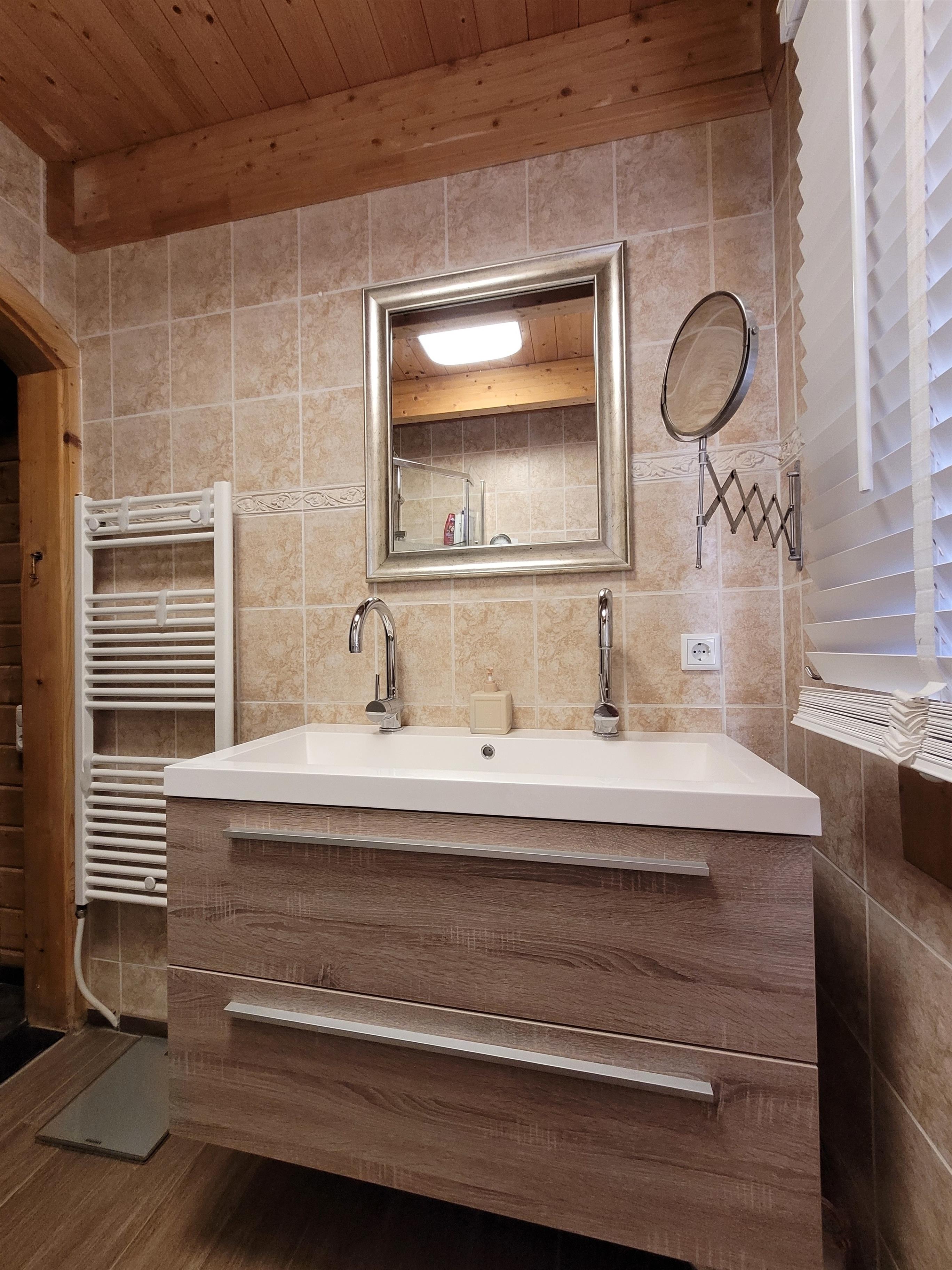 Das Bad sowie die Küche und der Wirtschaftsraum mit Waschmaschine und Trockner befinden sich ebenfalls auf dieser Ebene.