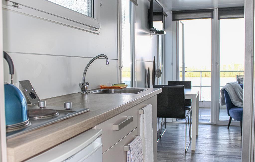Genießen Sie den Flevoland-Polder in Ihrem Hausboot. Die Küche ist mit einem Elektroherd, einem Kühlschrank mit Gefrierfach und einer Dolce Gusto-Kaffeemaschine ausgestattet. Genießen Sie die untergehende Sonne auf der Dachterrasse.