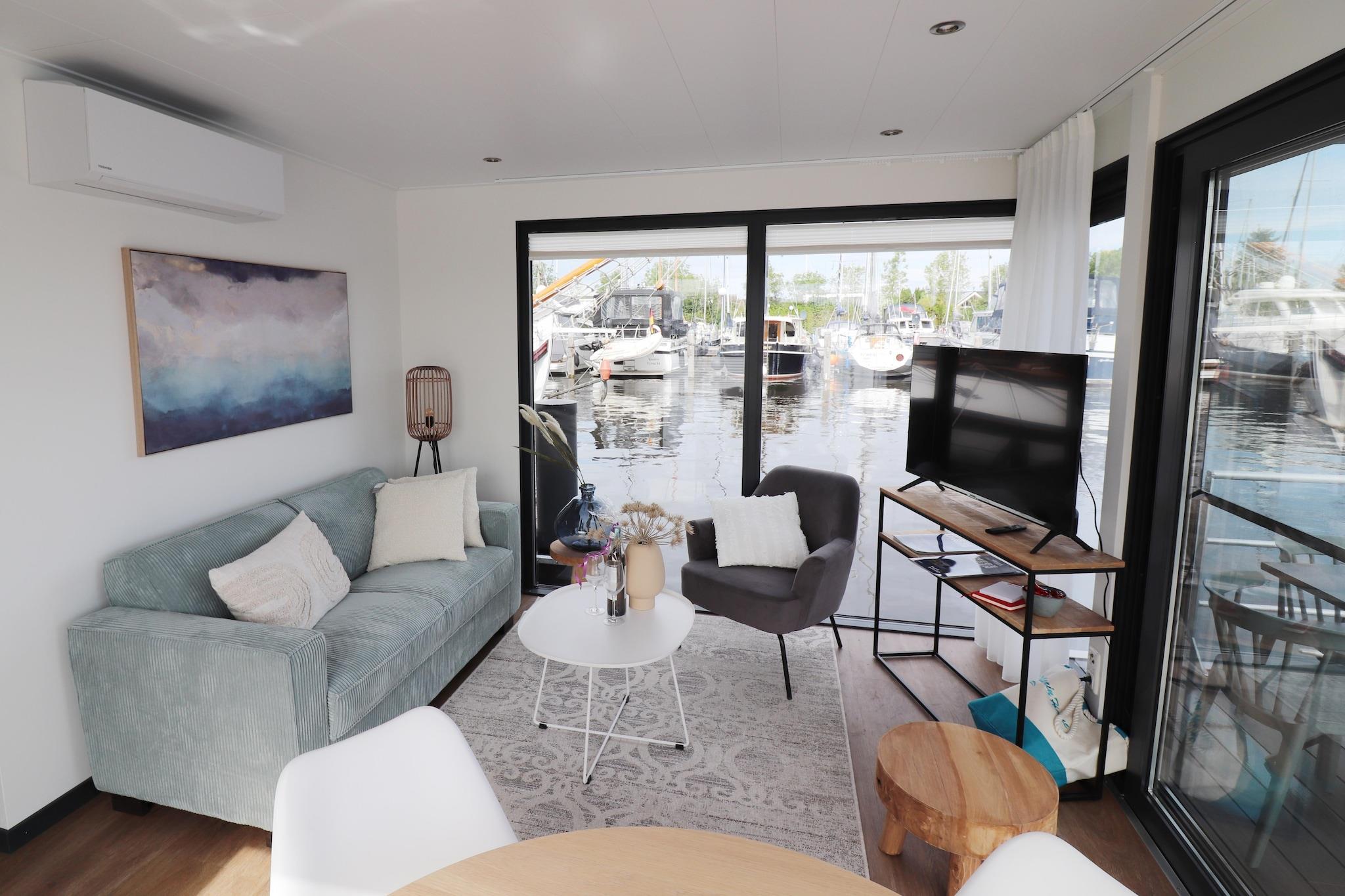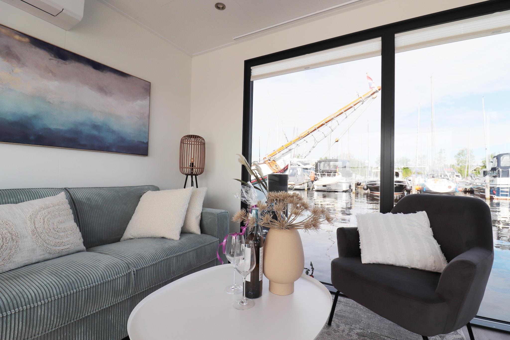 Wake up on the water in this stylish houseboat nestled in the scenic harbor of Lemmer. With its modern design and cozy interior, this floating home offers a unique stay for up to 4 guests. Inside, you’ll find a tastefully decorated living room, a sleek open kitchen with a dishwasher, and two comfortable bedrooms—one with a double bed and one with a single bed and a loft bed. The contemporary bathroom includes a shower, sink, and toilet. Step outside onto your private terrace and soak in serene harbor views, perfect for a morning coffee or evening drink. Please note: pets and smoking are not allowed, and the boat remains moored during your stay. Lemmer is a lively and welcoming village where charming streets meet sparkling water. Just 500 meters from your houseboat, Lemmer Beach invites you to relax in the sun or take a refreshing swim. The historic village center (600 m) is packed with local boutiques, inviting cafés, and diverse restaurants—perfect for a dinner overlooking the harbor. For a unique cultural experience, visit the UNESCO World Heritage site Woudagemaal, a fascinating steam-powered pumping station just 2 km away. In August, don’t miss the vibrant Skûtsjesilen sailing event, a thrilling two-day regatta that captures Friesland’s nautical spirit. Whether you’re looking for a peaceful getaway, a romantic weekend, or quality family time on the water, this houseboat offers comfort, character, and a front-row seat to Lemmer’s charm—all with the gentle sway of the harbor at your doorstep.