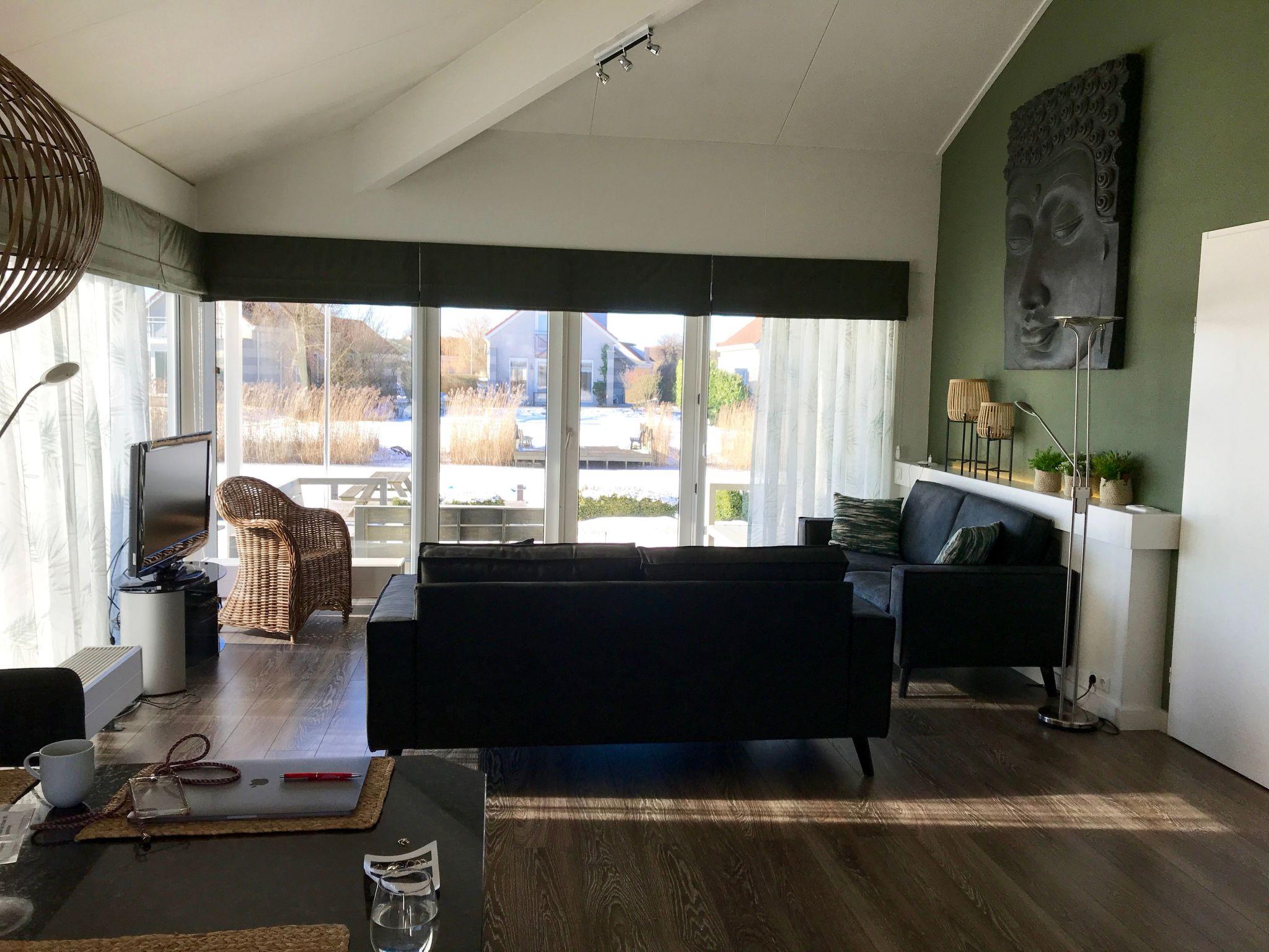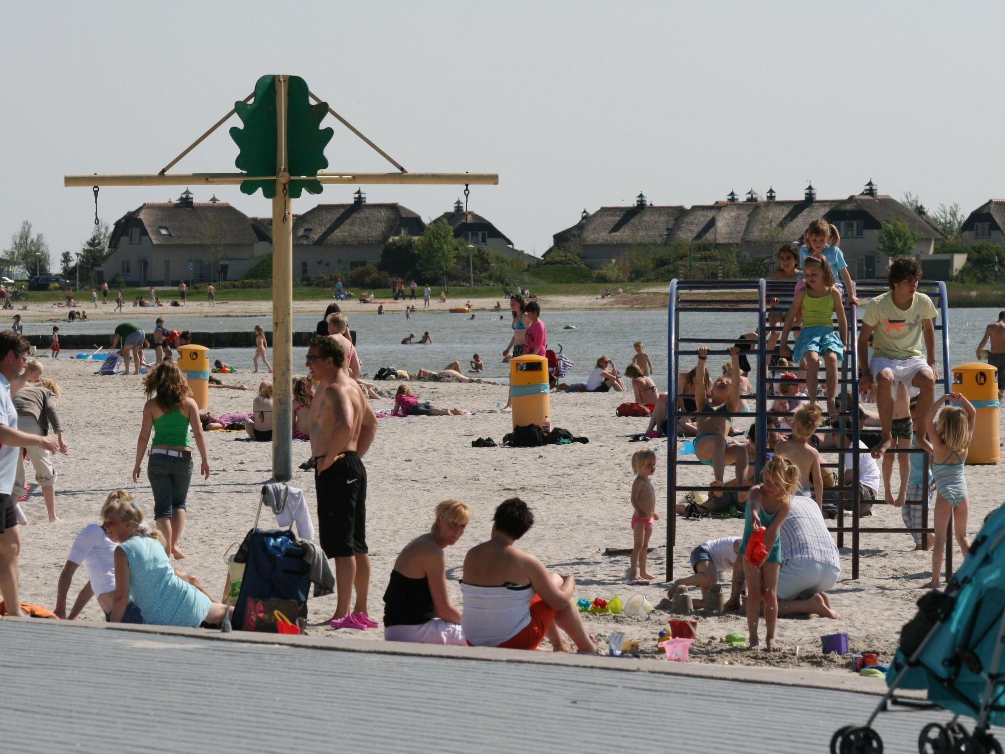 The holiday house is situated by the open channel to Ijsselmeer. You can go on boat trips on Ijsselmeer from your own boat jetty, or just cruise around the park e.g. with a dinghy. The sandy and surfing beach with a boulevard is only a couple of hundred metres away through the park.