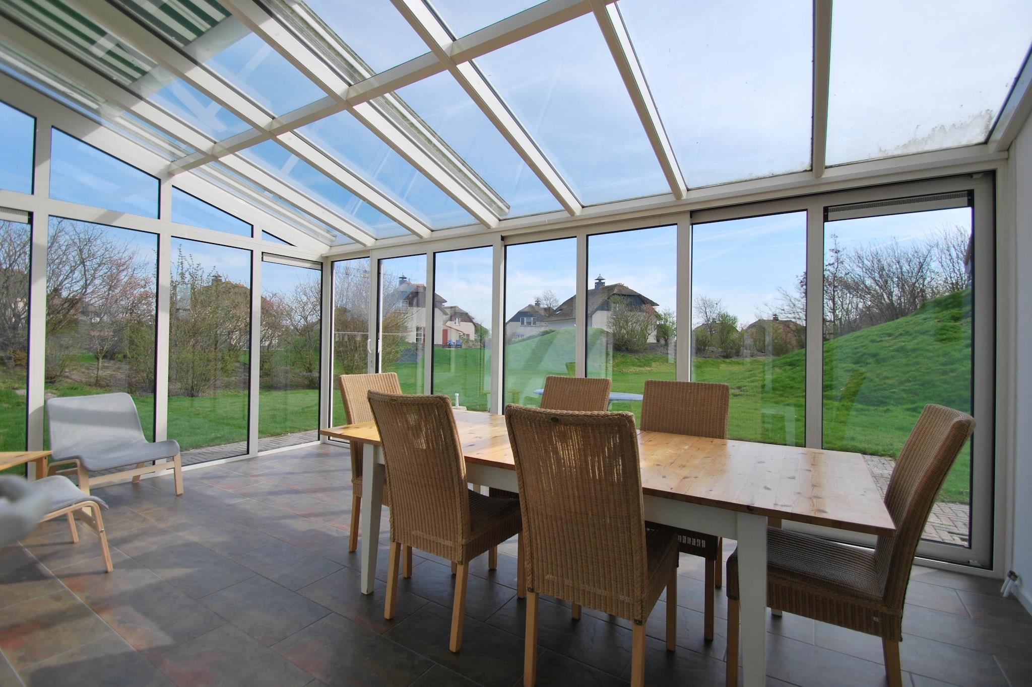 Ground floor: (Living room(TV(digital), decorative fireplace, DVD player, CD player), open kitchen(electric kettle, cooker, coffee machine(filter, pads), microwave, dishwasher, fridge(+ freezer)), toilet, conservatory) On the 1st floor: (bedroom(double bed or 2 single beds, TV), bedroom(2x single bed, solarium), bathroom(bath tub, shower, washbasin), toilet) tumble dryer, washing machine, terrace, garden, garden furniture, parking