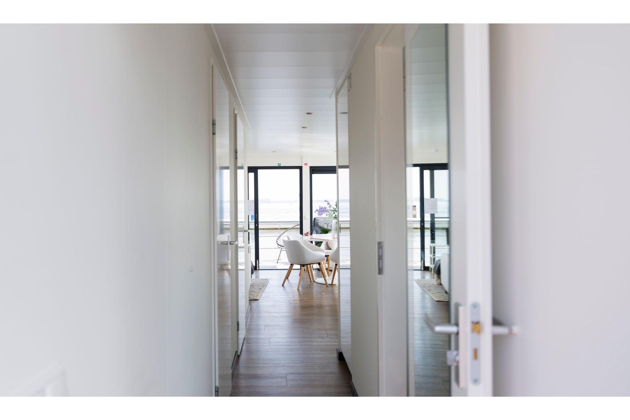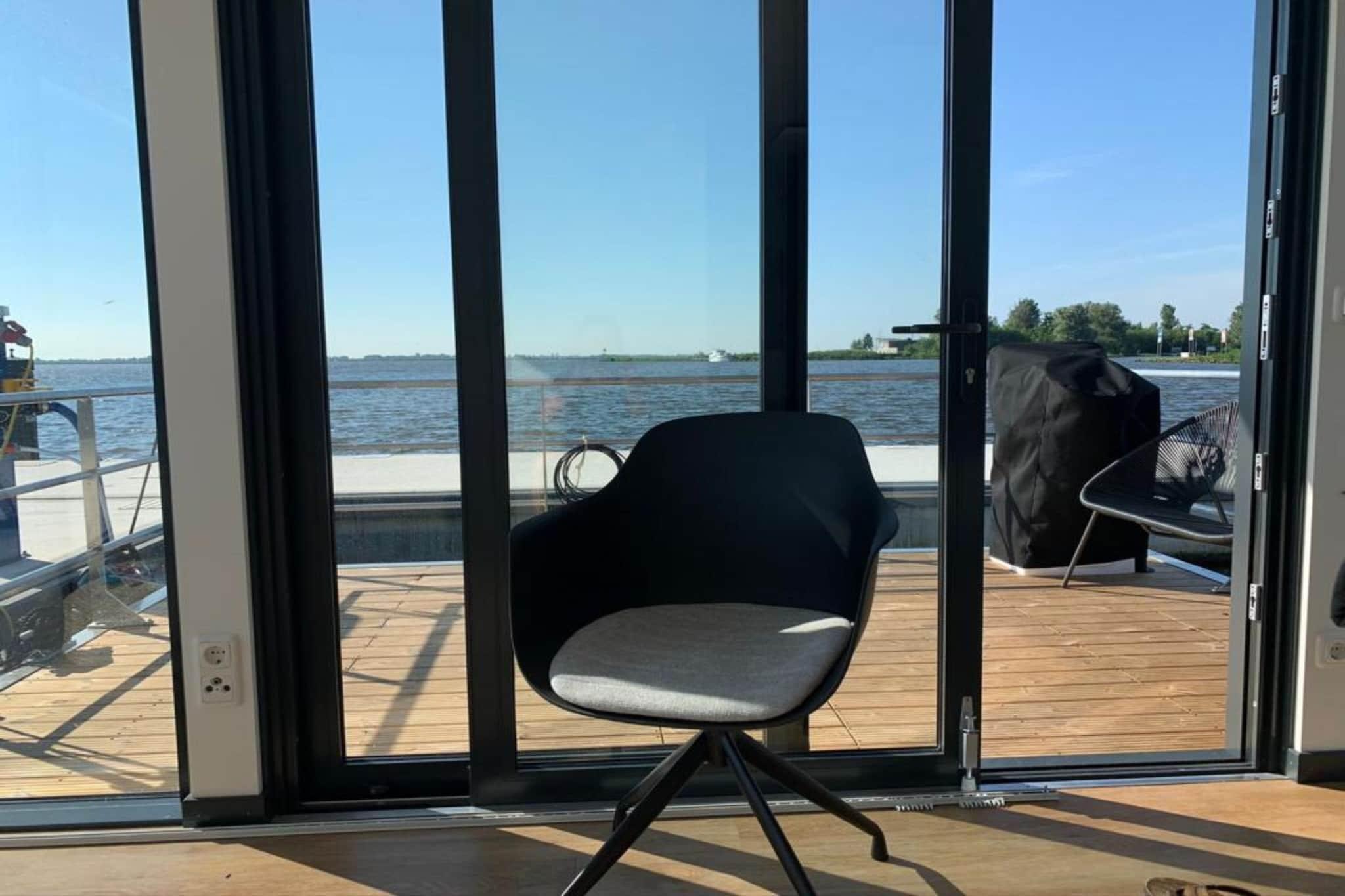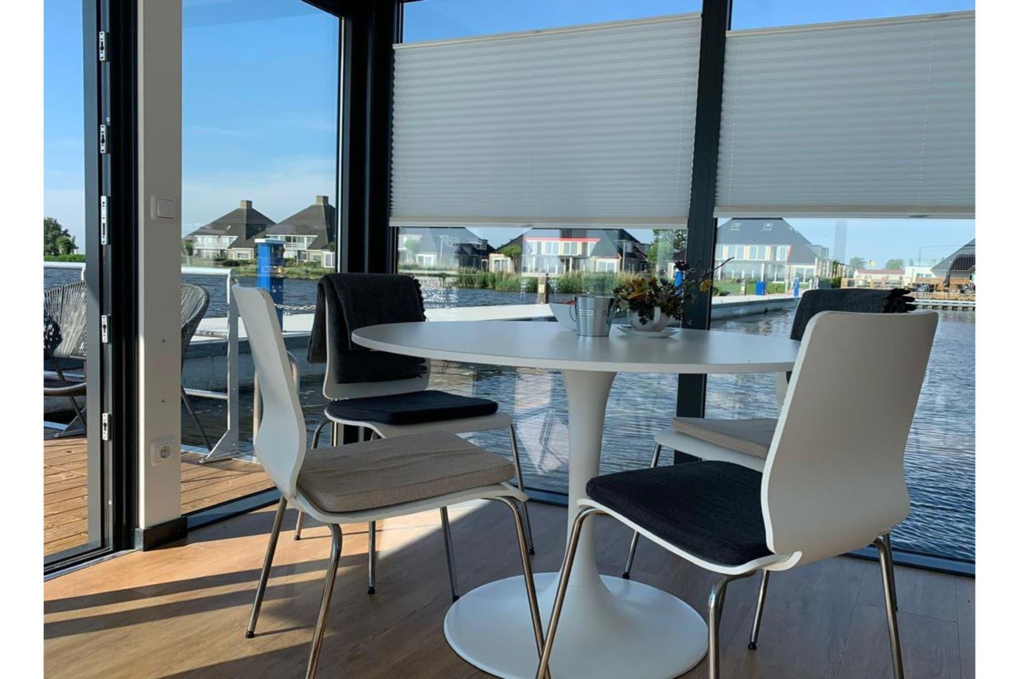 This high-quality houseboat is located in a beautiful location on the edge of Jachthaven Waterrijck, offering an unobstructed view over the Sneekermeer. The houseboat is suitable for 4 people, with 2 separate bedrooms and is equipped with all the necessary amenities to make your stay comfortable. The front and top deck are spacious and feature a roof terrace, where you can relax, sunbathe, enjoy the sunset, or simply take in the tranquility of the surroundings. The houseboat is suitable for use throughout the year. The houseboat is situated in a unique water sports area, in a fantastic new harbor area developed under the name Waterrijck Sneekermeer. This location is perfect for those looking to enjoy water sports, as well as those looking to explore the Frisian lakes and the surrounding area. Whether you're looking for relaxation or adventure, this houseboat is an ideal choice for your holiday. If you don't feel like cooking or don't have time, the Beachclub Sneek with delicious food is within walking distance The houseboat also has several terraces, the largest of which is a spacious sun deck, which is accessible by a spiral staircase. The bedrooms and bathroom have insect windows, allowing you to sleep peacefully. The houseboat is firmly attached to the jetty length of the harbor and cannot be moved, but it is located close to the Starteiland, so you can reach all Frisian lakes and enjoy various activities. The modern kitchen is fully equipped with a stove, oven, kettle, Nespresso machine with milk frother, fridge/freezer, and dishwasher, providing everything you need for a pleasant stay. The houseboat has one bedroom with a double bed and the other with a bunk bed, and a bathroom with a shower and toilet. The home has access to free WiFi throughout the property, so you can enjoy unlimited wireless streaming.