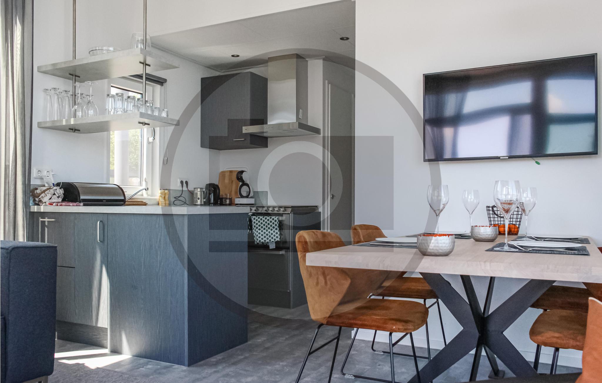 Das schwimmende Ferienhaus verfügt über einen eigenen Steg, an dem Sie Ihr kleineres Boot, Kanu oder SUP festmachen können. Sie betreten das Haus über die Terrasse mit freiem Blick auf das Wasser. Wenn Sie Schatten brauchen, hält der Eigentümer im Haus ein Sonnensegel für Sie bereit. Über die Terrasse betreten Sie das Wohnzimmer mit offener Küche. Vom Sitz- und Essbereich haben Sie einen schönen Blick auf das umliegende Wasser. Für ein Hausboot ist die Küche überdurchschnittlich gut ausgestattet. Zum Beispiel gibt es einen kleinen Geschirrspüler und einem Ofen. Die Schlafzimmer haben ein Doppelbett (200x180cm und 200x150cm) und einen Fernseher.