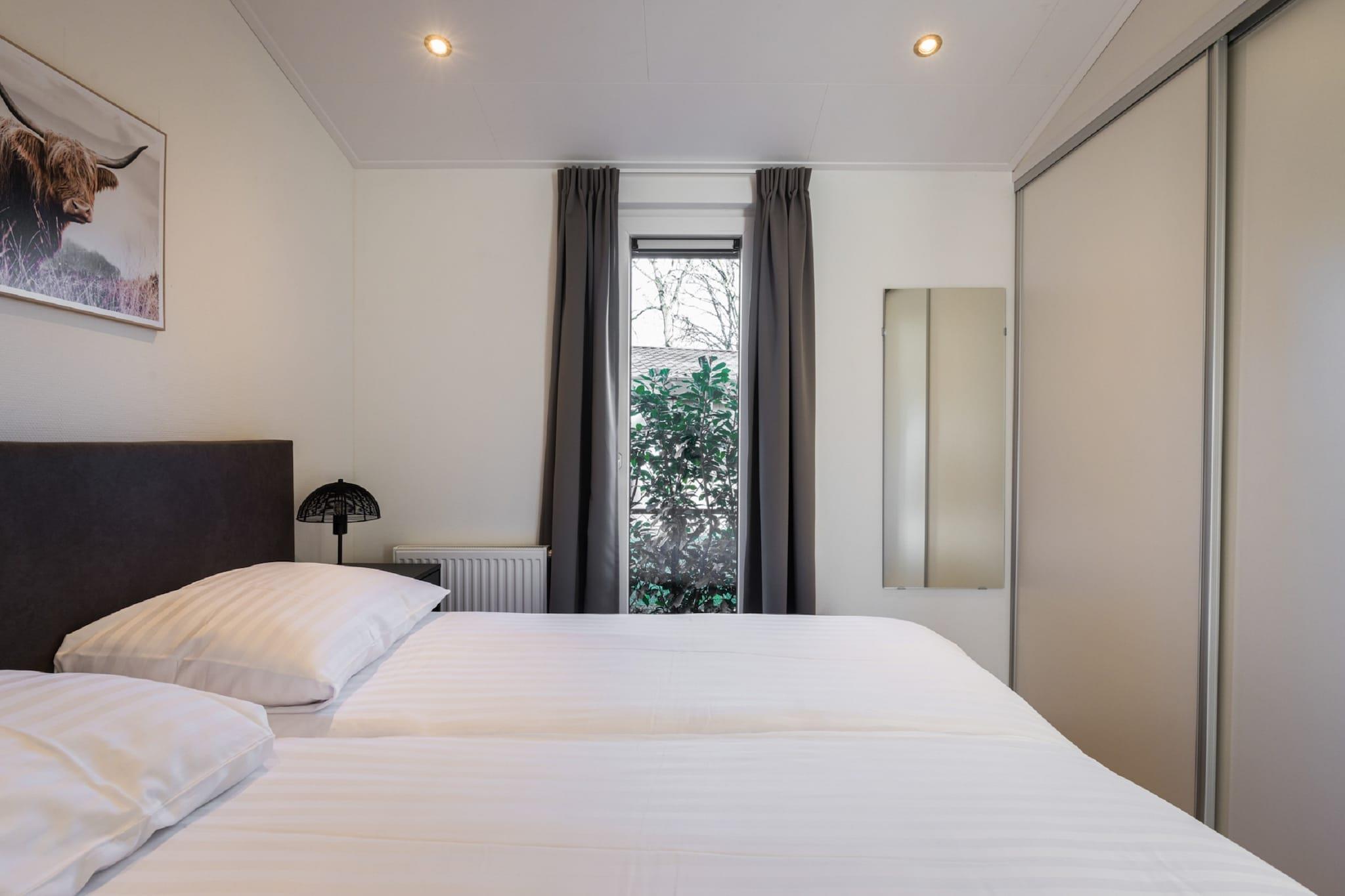 Modern Comfort in a Peaceful Setting Tucked within a serene holiday park in Oirschot, this stylish lodge offers the ideal blend of coziness and modern amenities. Inside, unwind in the bright living area with a smart TV and streaming access, or whip up meals in the sleek, fully equipped kitchen featuring a dishwasher and combination microwave. With two well-appointed bedrooms—one with a double bed and the other with twin box springs—this home is perfect for couples, families, or friends seeking a relaxing escape. Pet-Friendly Perks & Outdoor Bliss Bring your furry companions along—this home is pet-friendly and surrounded by nature! Your private terrace and garden offer a safe, breezy spot for lounging or dining alfresco. Just steps away, enjoy long strolls through Oirschotse Heide, where off-leash trails, forest paths, and open fields give your pup room to roam. You can even join local dog meetups and canine-friendly events often hosted in nearby parks. Explore Local Flavors in Charming Oirschot Only minutes away, the historic town center of Oirschot invites you to enjoy Dutch hospitality at its best. Treat yourself at pet-welcoming cafés like De Zwaan or D’n Babbel, known for hearty local dishes and sunny terraces. After a day of dining and exploring, return for a dip in the shared swimming pool or a quiet evening under the stars.