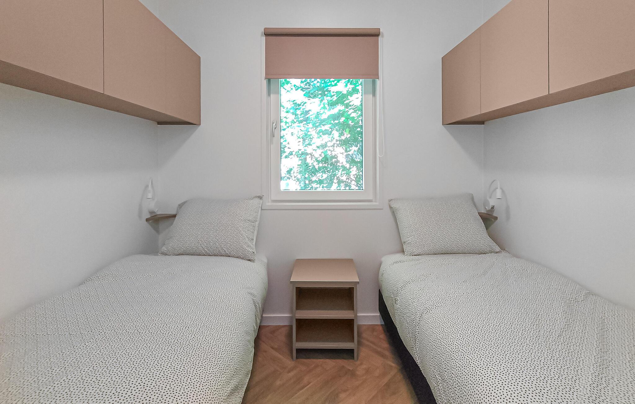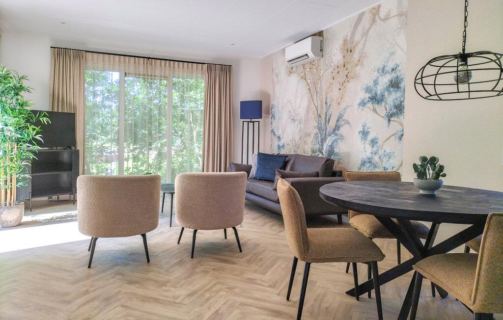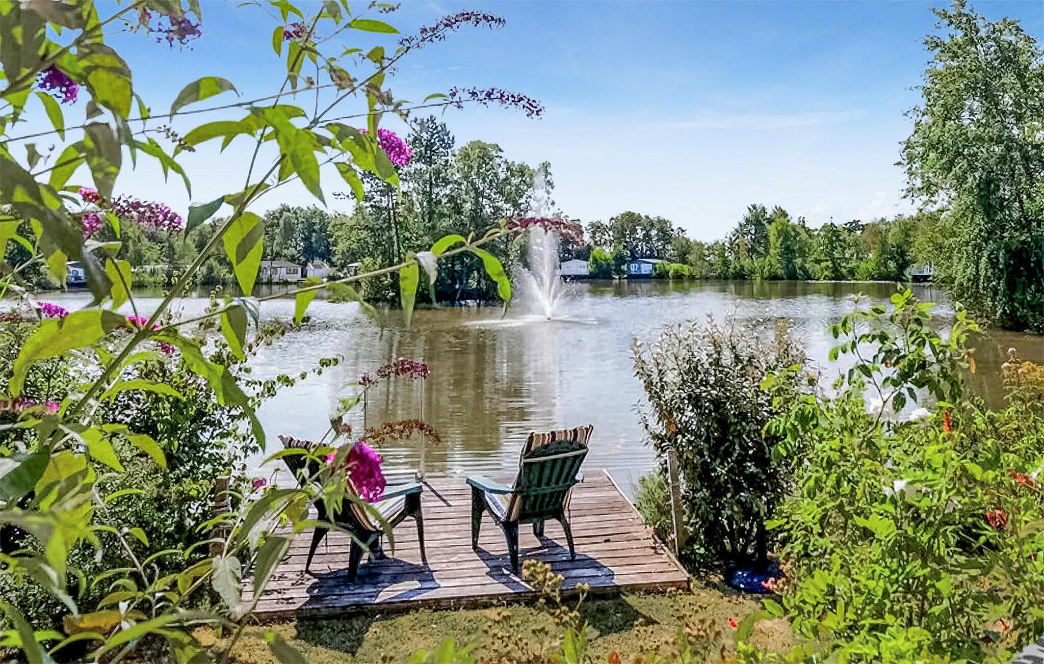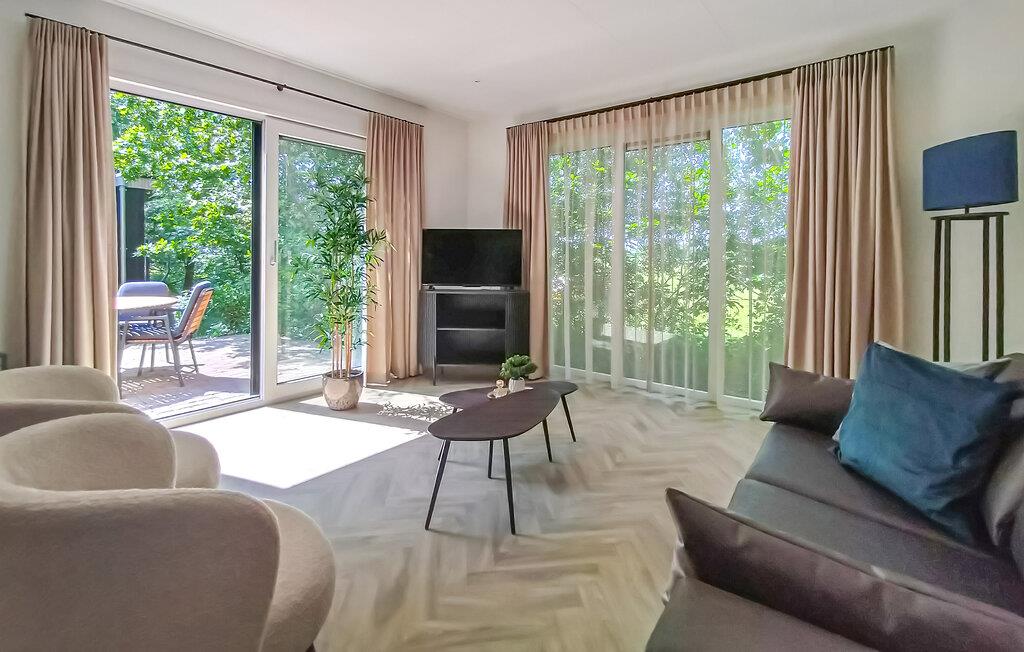 Treten Sie aus dem Wohnbereich ins Freie, wo die Terrasse zum Entspannen mit Blick auf die Natur einlädt. Genießen Sie Badespaß am See und kehren Sie in das Restaurant des Ferienparks ein.