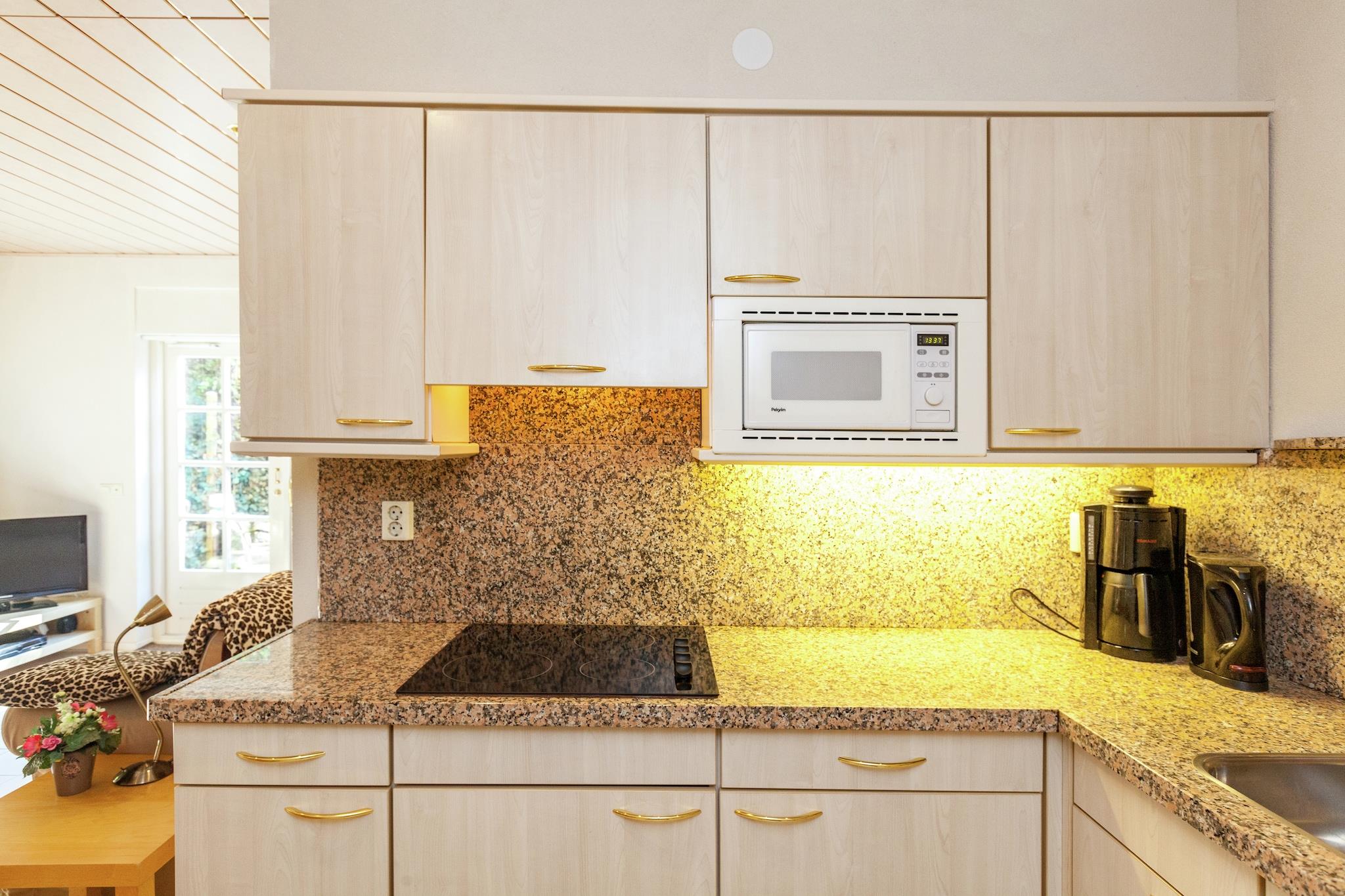 Open kitchen(cooker(ceramic), combination microwave, microwave, fridge-freezer, high chair), Living/diningroom(TV, dining table(4 persons), radio, CD player), bedroom(bunk bed), bedroom(double bed), bathroom(shower, toilet), tumble dryer(shared with other guests), washing machine(shared with other guests), heating(central), terrace(14 m2), garden furniture(4 persons), parking, children's bed, high chair