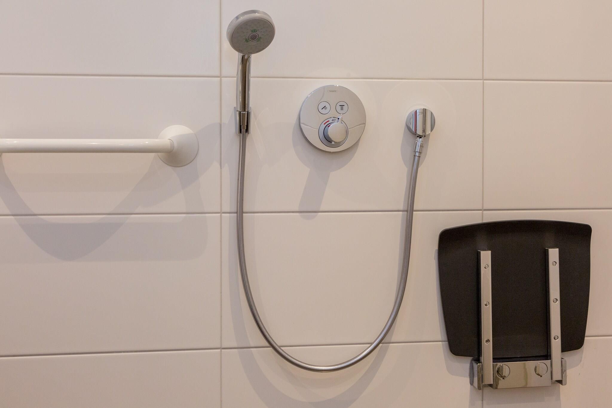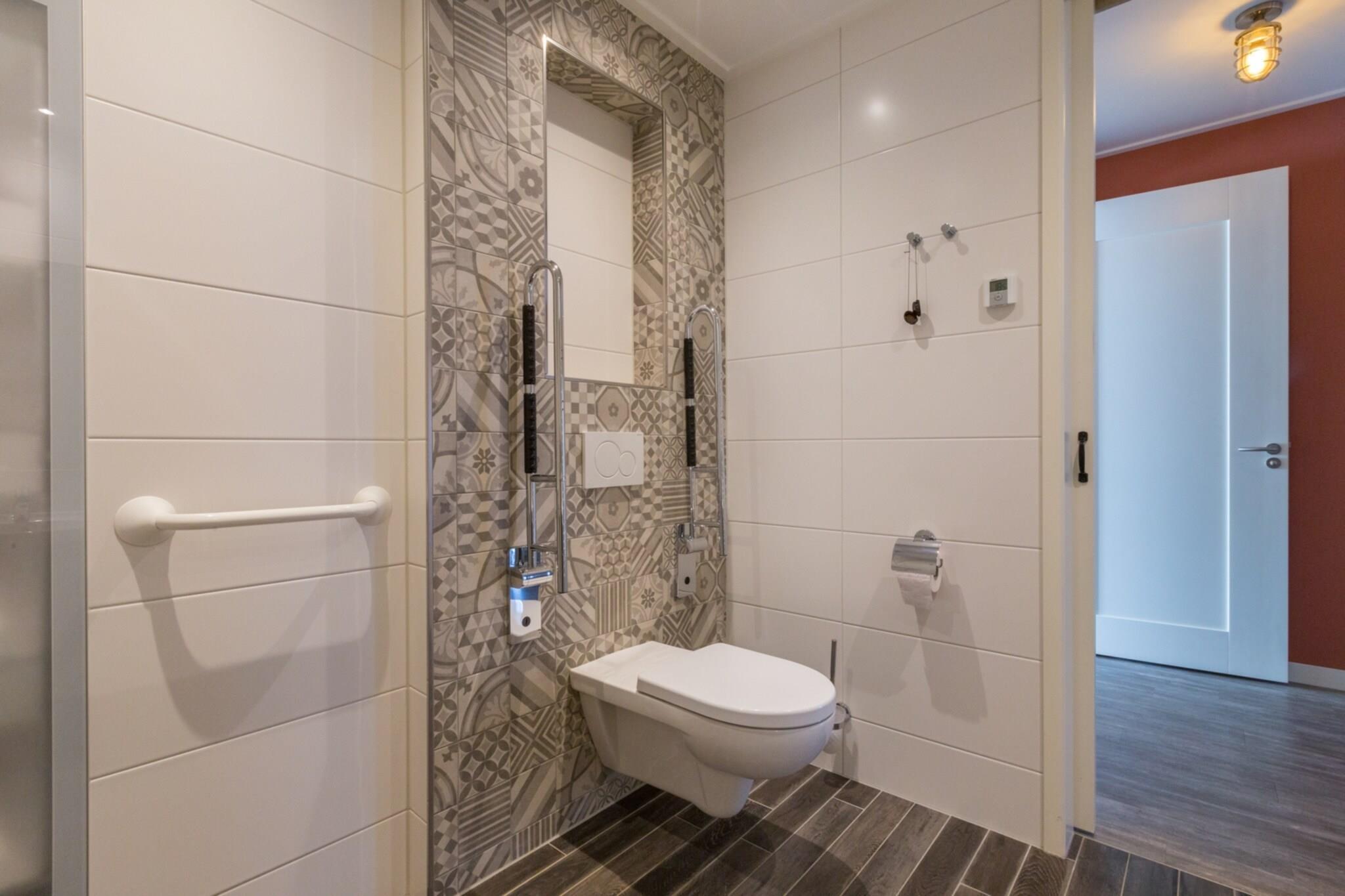 Ground floor: (open kitchen(cooker(4 ring stoves, electric), coffee machine, combination microwave, dishwasher, fridge, freezer), Living/diningroom(TV(cable, flatscreen), dining table(6 persons), seating area), Bedroom with bathroom(single bed(boxspring), shower, washbasin), Bedroom with bathroom(2x single bed(boxspring), shower(adapted for disabled), washbasin, toilet(adapted for disabled)), toilet) On the 1st floor: (bedroom(2x single bed(boxspring), seating area), bedroom(single bed(boxspring)), bathroom(bath tub, sun shower, washbasin, toilet)) Annex: (tumble dryer(shared with other guests, paid), washing machine(shared with other guests, paid)) heating(floor heating), terrace(private, 16 m2), garden(shared with other guests, 150 m2), garden furniture, parking