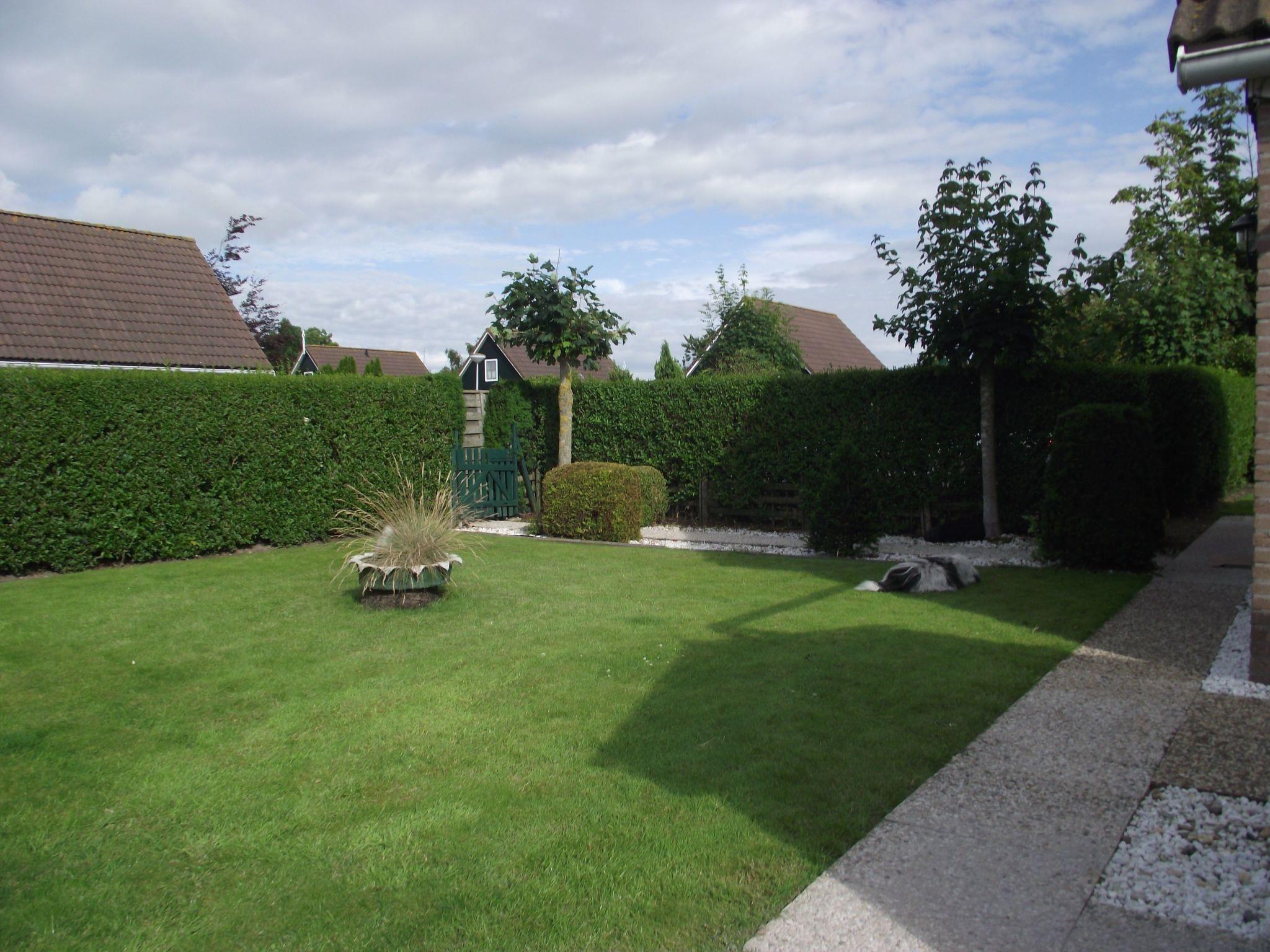 The fully enclosed property is fenced towards the road and the neighbour. On the other two sides, the property borders on water. There are hedges and an 80cm high fence securing the sloot (surface water ditch). Directly connected to the holiday home is a conservatory, which can be opened with sliding doors. This has seating, deckchairs, parasols and a charcoal barbecue. There are two private outdoor car parking spaces in front of the house. There is also a shed on the property, which can be used to store bicycles or other items. In the summer months, the holiday complex offers a swimming pool (10 x 25 m) for communal use free of charge, which is approx. 50 m from your holiday home.