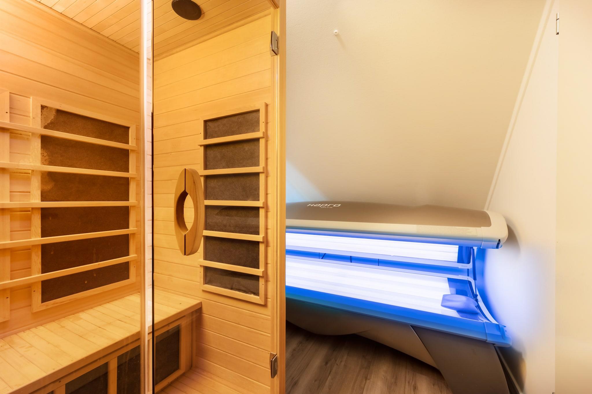 Ground floor: (Living room(TV), open kitchen(coffee machine(filter), combination microwave, dishwasher), bedroom(2x single bed), bathroom(shower, toilet), storage, garden doors) On the 1st floor: (bedroom(2x single bed), bedroom(2x single bed), toilet, relaxation area(solarium, infrared sauna)) heating(central), terrace, garden, garden furniture, parking, swimming pool(shared with other guests, roofed)