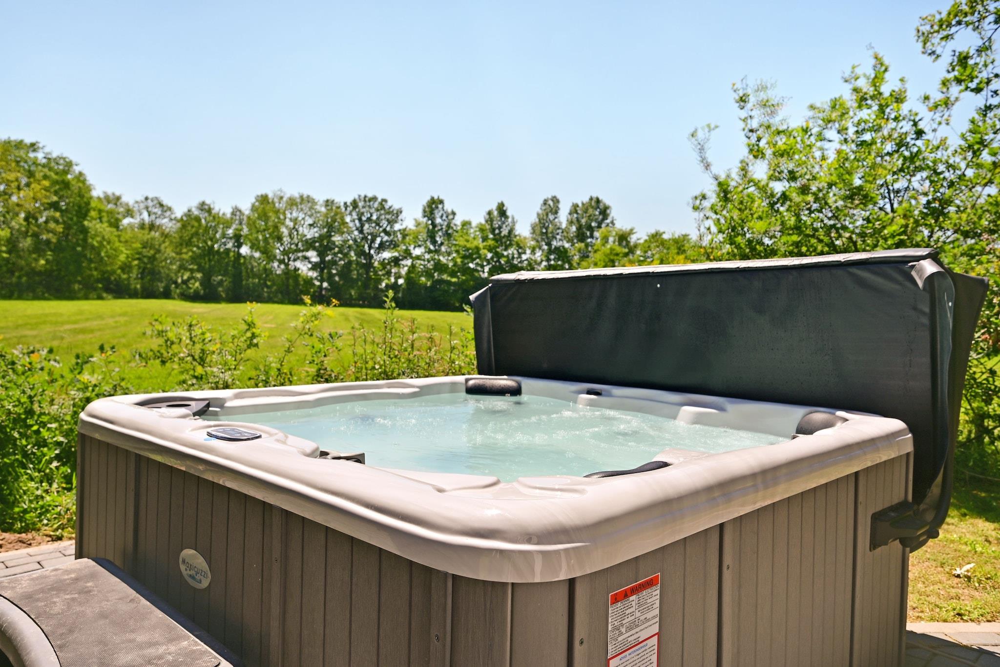 Stil en warm huisje. Jacuzzi kijkt uit over groot weiland. Bedden en slaapkamers stil en comfortabel. Vriendelijk personeel. Perfect uitje voor groep vrienden.