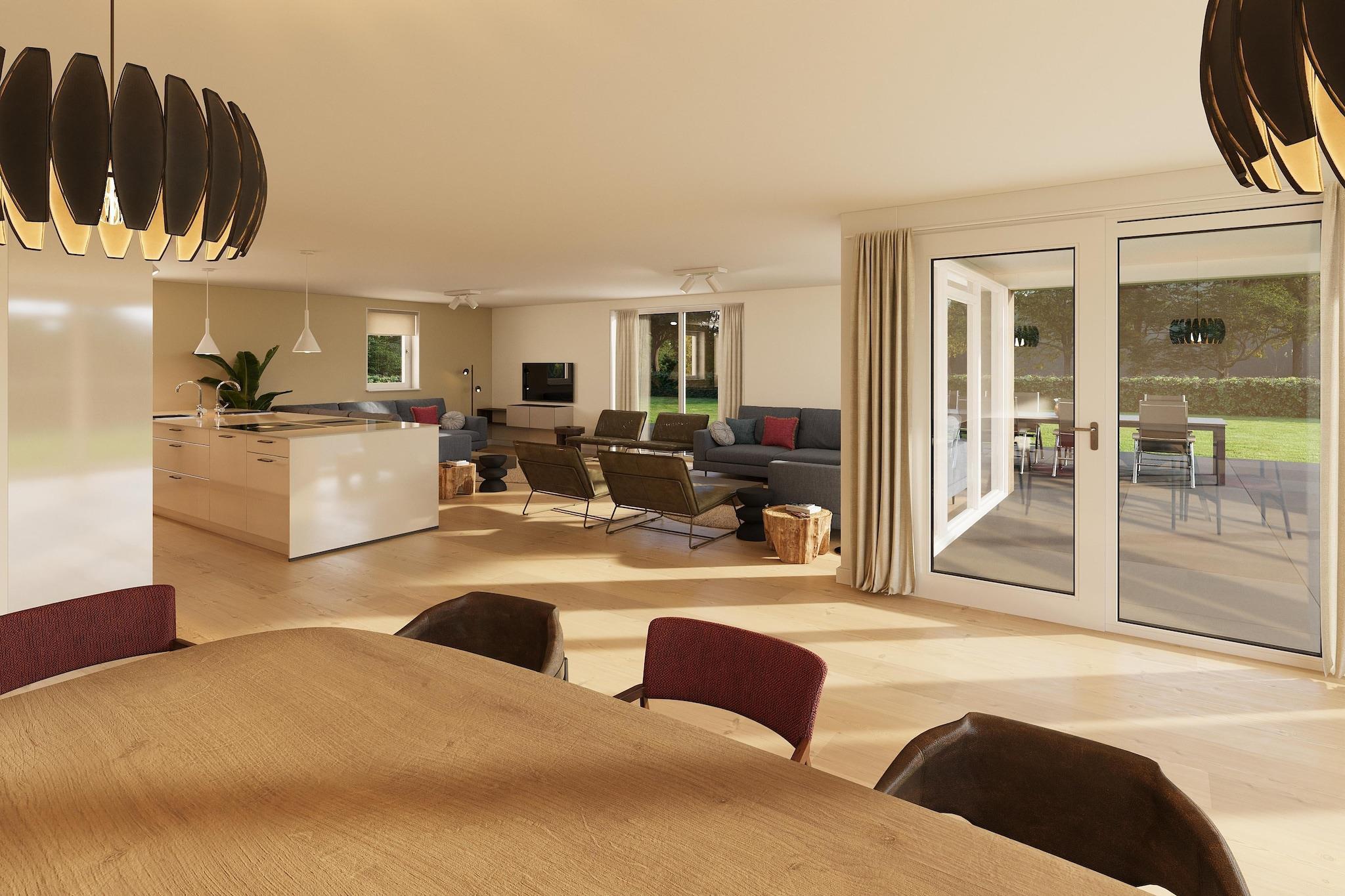 Spacious Comfort for Up to 14 Guests Welcome to a detached group holiday home at Dormio Resort De Hondsrug, perfect for large families or groups of up to 14 people. Surrounded by greenery at the edge of the resort, this modern 236 m² home offers 7 bedrooms and 6 bathrooms across two floors. The cozy living room features a large seating area, a smart TV with streaming capabilities, and a spacious dining area. The luxury kitchen is fully equipped with a cooking island, two hotplates, combi ovens, dishwashers, fridge-freezers, a Nespresso machine, and a filter coffee maker. Stylish Outdoor Living by the Creek Step into the expansive south-facing garden with unobstructed views of the creek and surrounding nature. The spacious terrace is partly covered, making it perfect for year-round outdoor dining. The outdoor kitchen features a luxury charcoal barbecue and an outdoor fireplace with a pizza oven—perfect for relaxed evenings with food and friends. It’s the ideal setting to unwind, share meals, and enjoy the peaceful, natural environment. Practical Perks for a Relaxing Stay The home offers 3 ground-floor bedrooms with en-suite bathrooms, and 4 additional bedrooms upstairs with 3 bathrooms and 2 bathtubs. Multiple separate toilets add convenience. Enjoy underfloor heating, free WiFi, 4 private parking spaces, and an outdoor storage room with space and charging for bikes.