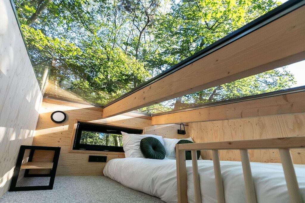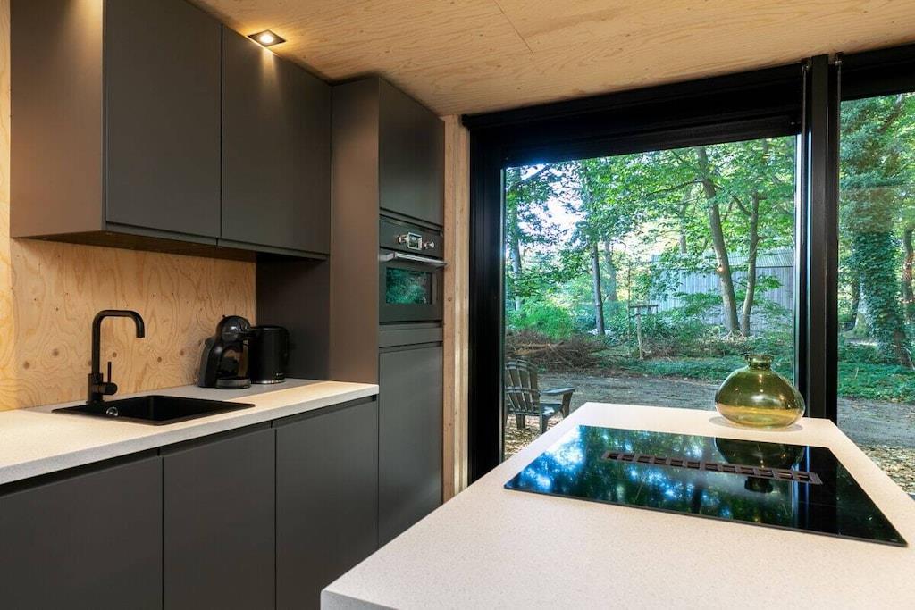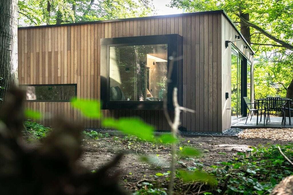 Sleep in the luxurious double bed in the alcove overlooking the forest. Or enjoy romantic nights for two on the sleeping loft under the stars and treetops. There is also a bedroom with a bunk bed. An oasis of peace and luxury, beautifully situated in the Teteringen Forest, between Breda and Oosterhout. Right next to the De Haenen Golf Park, mountain bike trails, and hiking paths, this house with a rain shower and whirlpool offers the perfect base for golf enthusiasts, (adventurous) cyclists, hikers, and visitors to the vibrant city of Breda.