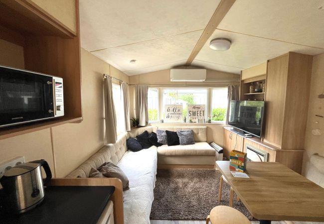 The accommodation features a well-equipped American-style kitchen with essential amenities including a fridge, freezer, coffee machine, kettle, and kitchenware. You'll enjoy modern comforts like air conditioning, electric radiators, and complimentary WiFi. The sleeping arrangements include one double bed and two individual beds, ensuring a good night's rest for everyone.
