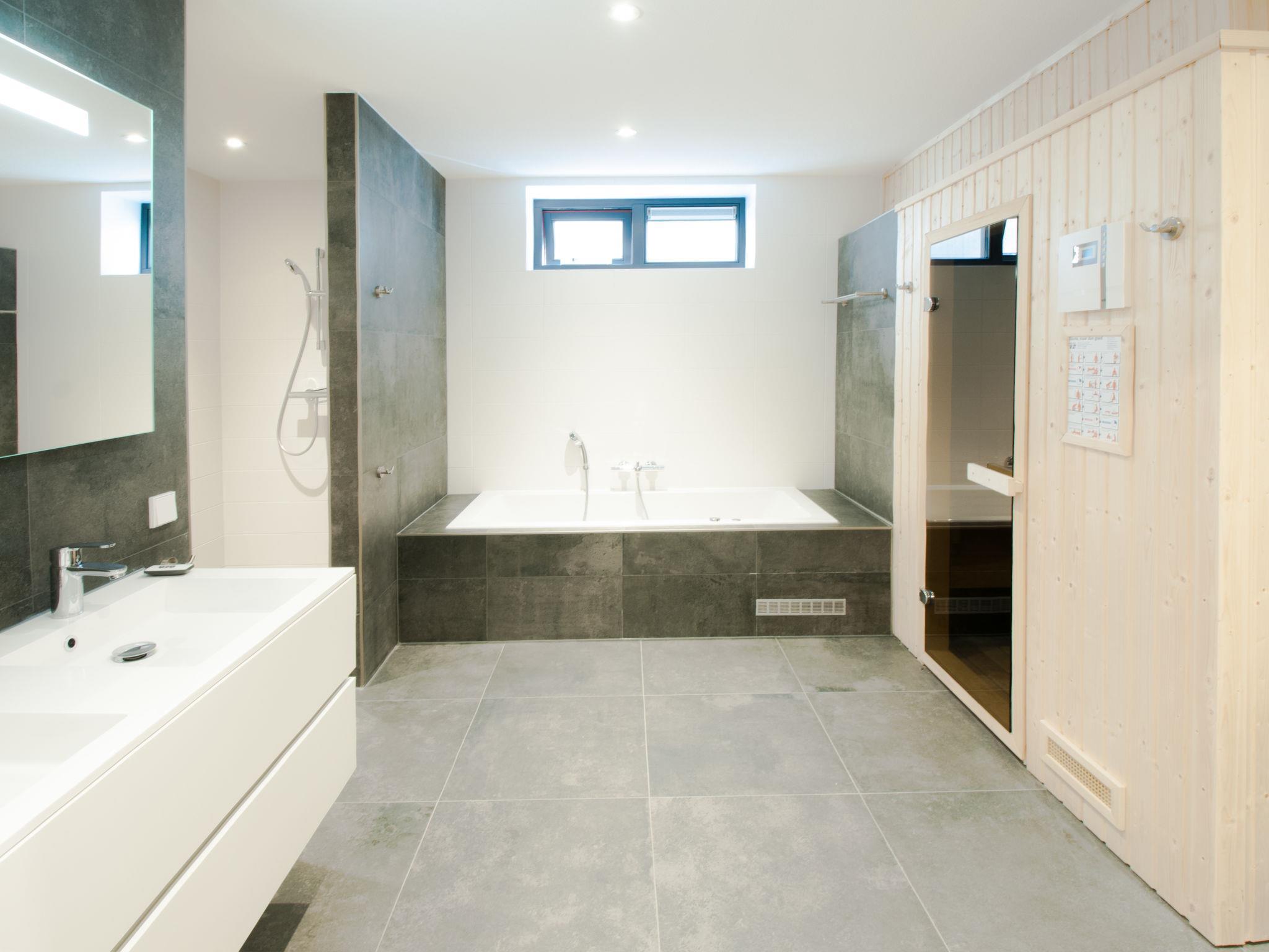 "Oesterdam Wellness 16", 9-room villa 200 m2 on 3 levels. Comfortable furnishings: entrance hall with separate WC. Living room with dining table, TV and international TV channels (flat screen). Exit to the garden. Open kitchen (5 hot plates, oven, dishwasher, kettle, electric coffee machine, combination microwave). Heating. On the lower ground floor: 4 double bedrooms, each room with 2 beds. Luggage room. Shower, shower/WC, sep. WC, hydro massage bath, Sauna. Upper floor: 4 double bedrooms with sloping ceilings, each room with 2 beds. 2 bathrooms, sep. WC. Terrace furniture. Facilities: washing machine, dryer. Internet (WiFi, free). Parking (5 cars) at the house. Please note: non-smoking house. Smoke alarm.
