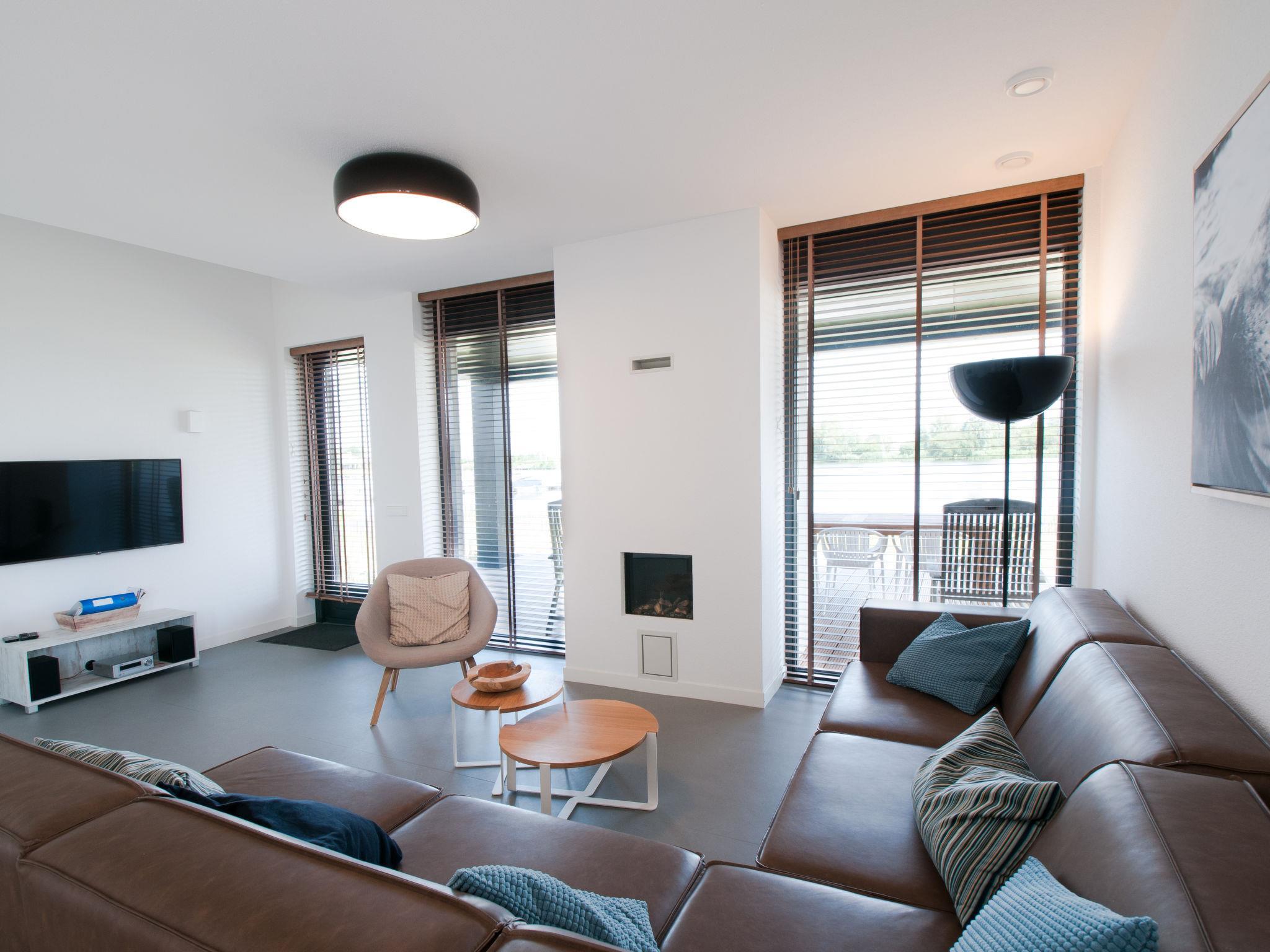 "Oesterdam Comfort 8", 5-room villa 170 m2. Comfortable furnishings: living room with TV and international TV channels (flat screen). Exit to the garden. Entrance hall with separate WC. 1 double bedroom with 2 beds, hand-basin and shower. Open kitchen (4 hot plates, dishwasher, kettle, electric coffee machine, combination microwave). Heating. Upper floor: 3 double bedrooms with sloping ceilings, each room with 2 beds. Bath/shower/WC, double hand-basin. Terrace furniture. View of the lake. Facilities: washing machine. Internet (WiFi, free). Parking (2 cars) at the house. Please note: non-smoking house. Private mooring. Smoke alarm.