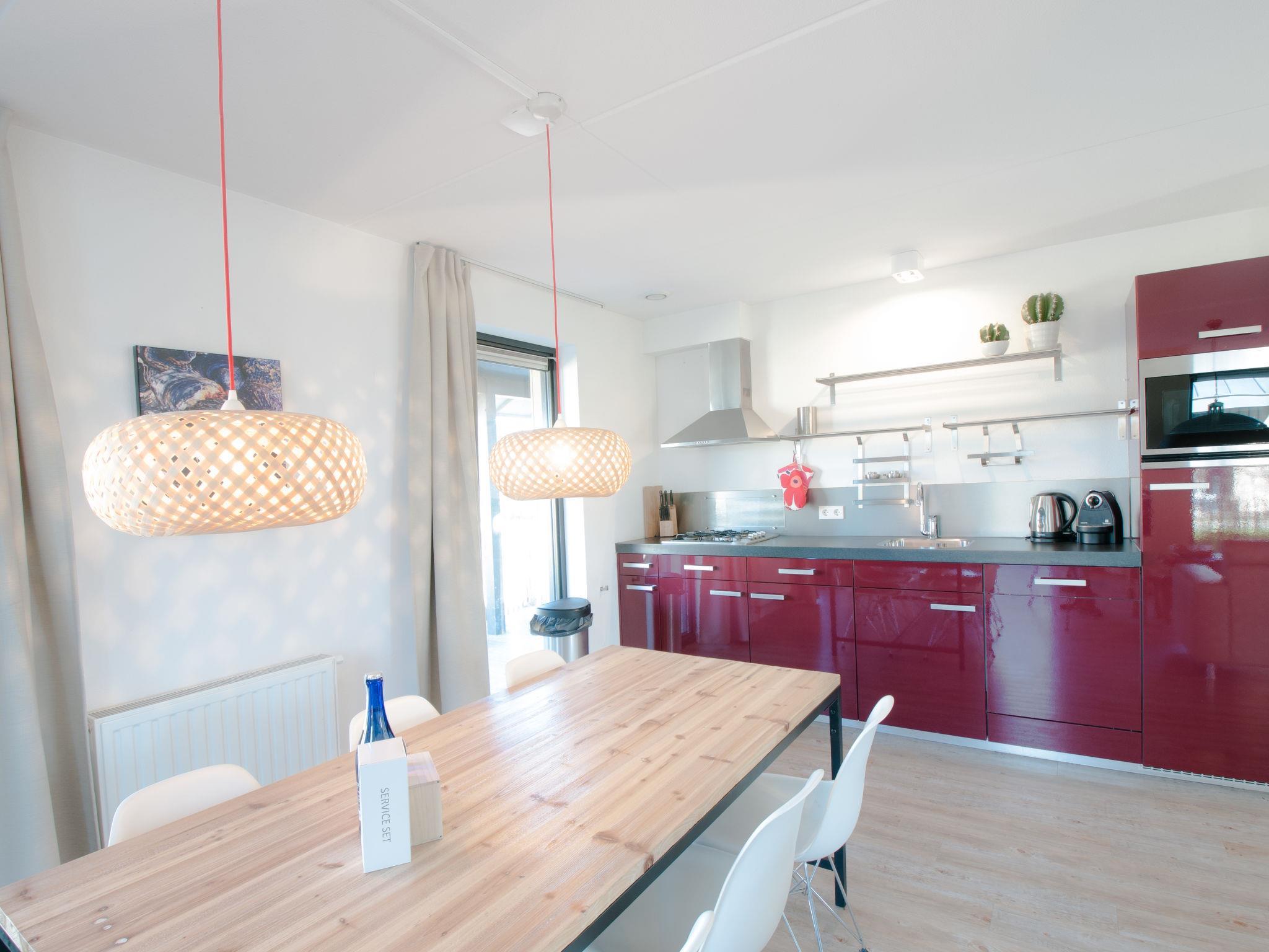 "Oesterdam Wellness 6", 4-room villa 133 m2 on 2 levels. Comfortable furnishings: open living room with dining table, TV and international TV channels (flat screen). 1 double bedroom with 2 beds. Open kitchen (4 hot plates, dishwasher, kettle, electric coffee machine, combination microwave). Exit to the garden. Shower, sep. WC, hydro massage bath. Heating. Upper floor: 2 double bedrooms with sloping ceilings, each room with 2 beds. Shower/WC, Sauna. Terrace furniture. Facilities: washing machine. Internet (WiFi, free). Parking (2 cars) at the house. Please note: non-smoking house. Smoke alarm.