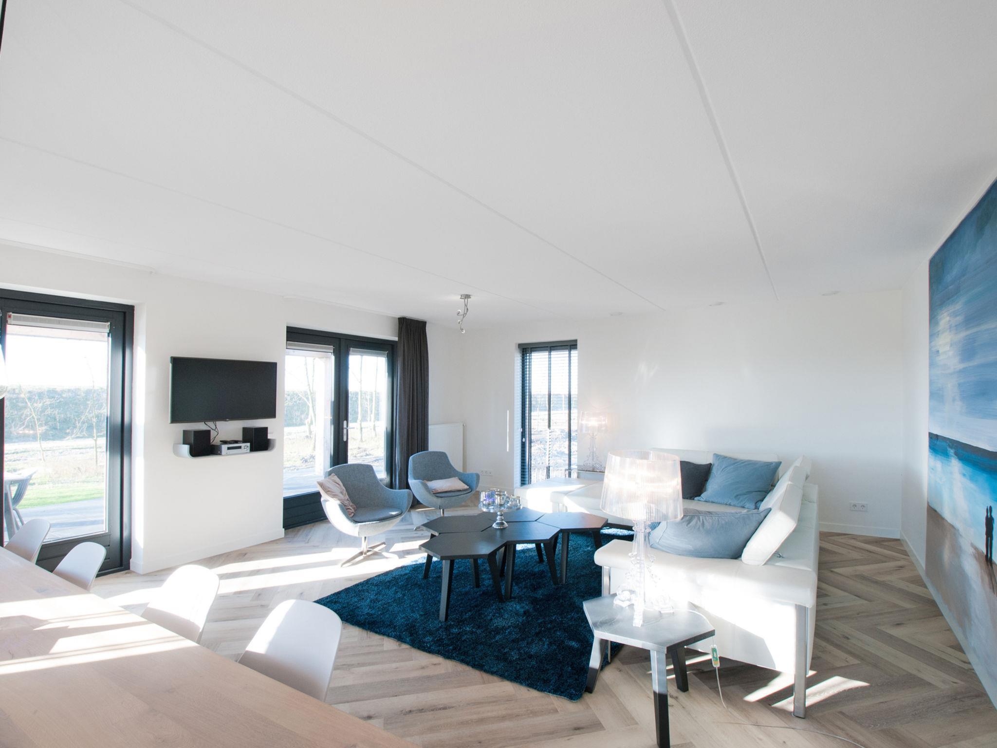 "Oesterdam Comfort Extra 8", 5-room house 170 m2 on 2 levels. Comfortable furnishings: entrance hall with separate WC. Living/dining room with dining table and flat screen. Exit to the terrace. 1 double bedroom with 2 beds and shower. Open kitchen (4 hot plates, dishwasher, kettle, electric coffee machine). Heating. Upper floor: 1 double bedroom with sloping ceilings with 2 beds, shower and flat screen. 2 double bedrooms with sloping ceilings, each room with 2 beds. Shower, 2 sep. WC's, double hand-basin. Terrace. Terrace furniture. Facilities: Internet (WiFi, free). Parking (3 cars) at the house. Please note: non-smoking house. Smoke alarm.