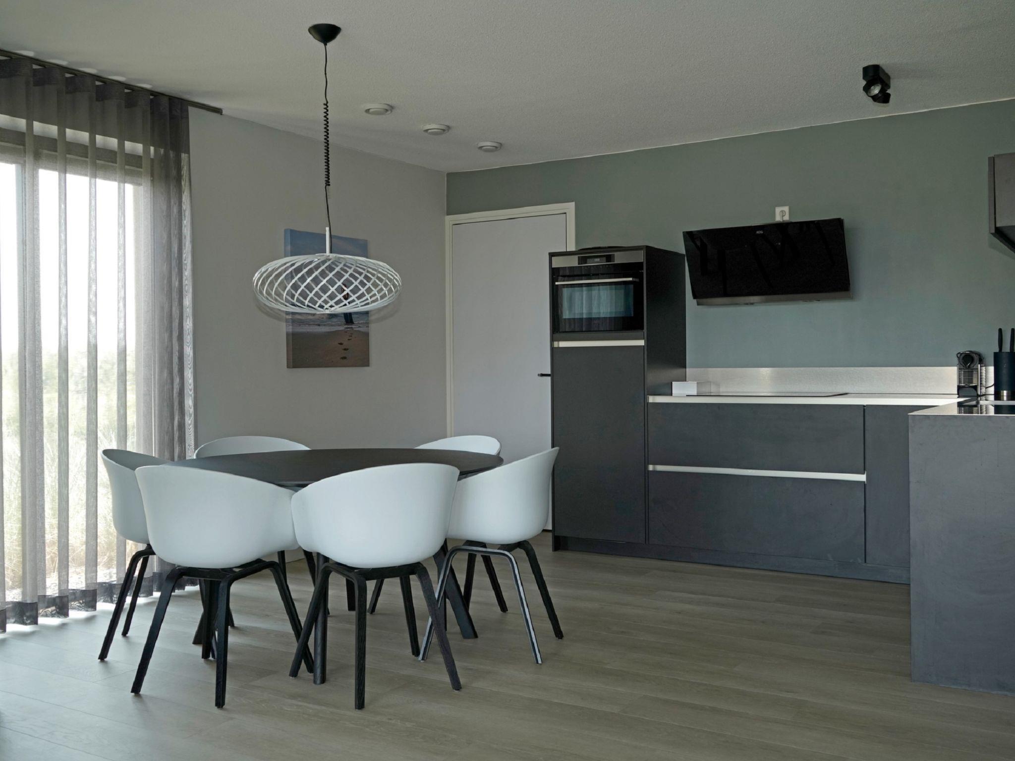 "Oesterdam Deluxe 6", 4-room house 104 m2 on 2 levels. Comfortable furnishings: entrance hall with separate WC. Living/dining room with dining table, flat screen and DVD. Exit to the garden. 1 double bedroom with 2 beds and flat screen. Open kitchen (4 hot plates, dishwasher, kettle, electric coffee machine, combination microwave). Bath/shower/WC. Heating. Upper floor: 2 double bedrooms with sloping ceilings, each room with 2 beds and flat screen. 2 showers/WC. Balcony, terrace. Terrace furniture. Facilities: washing machine. Internet (WiFi, free). Parking (2 cars) at the house. Please note: non-smoking house. Smoke alarm.