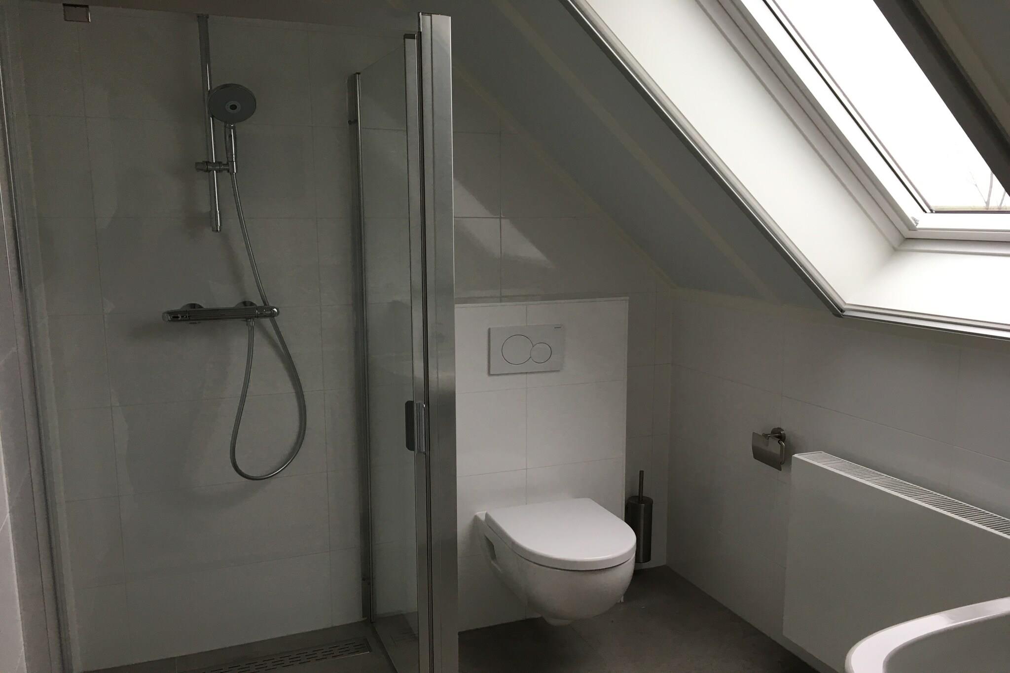 Ground floor: (hallway(toilet), Living room(TV), open kitchen(electric kettle, cooker(4 ring stoves, gas), coffee machine(cups), combination microwave, dishwasher, fridge(+ freezer)), Bedroom with bathroom(double bed, shower, washbasin), garden doors) On the 1st floor: (Bedroom with bathroom(double bed or 2 single beds, shower, washbasin, balcony), Bedroom with bathroom(double bed or 2 single beds, shower, washbasin), Bedroom with bathroom(double bed or 2 single beds, bathtub with shower, washbasin), Landing) heating, terrace(roofed), garden, garden furniture, parking