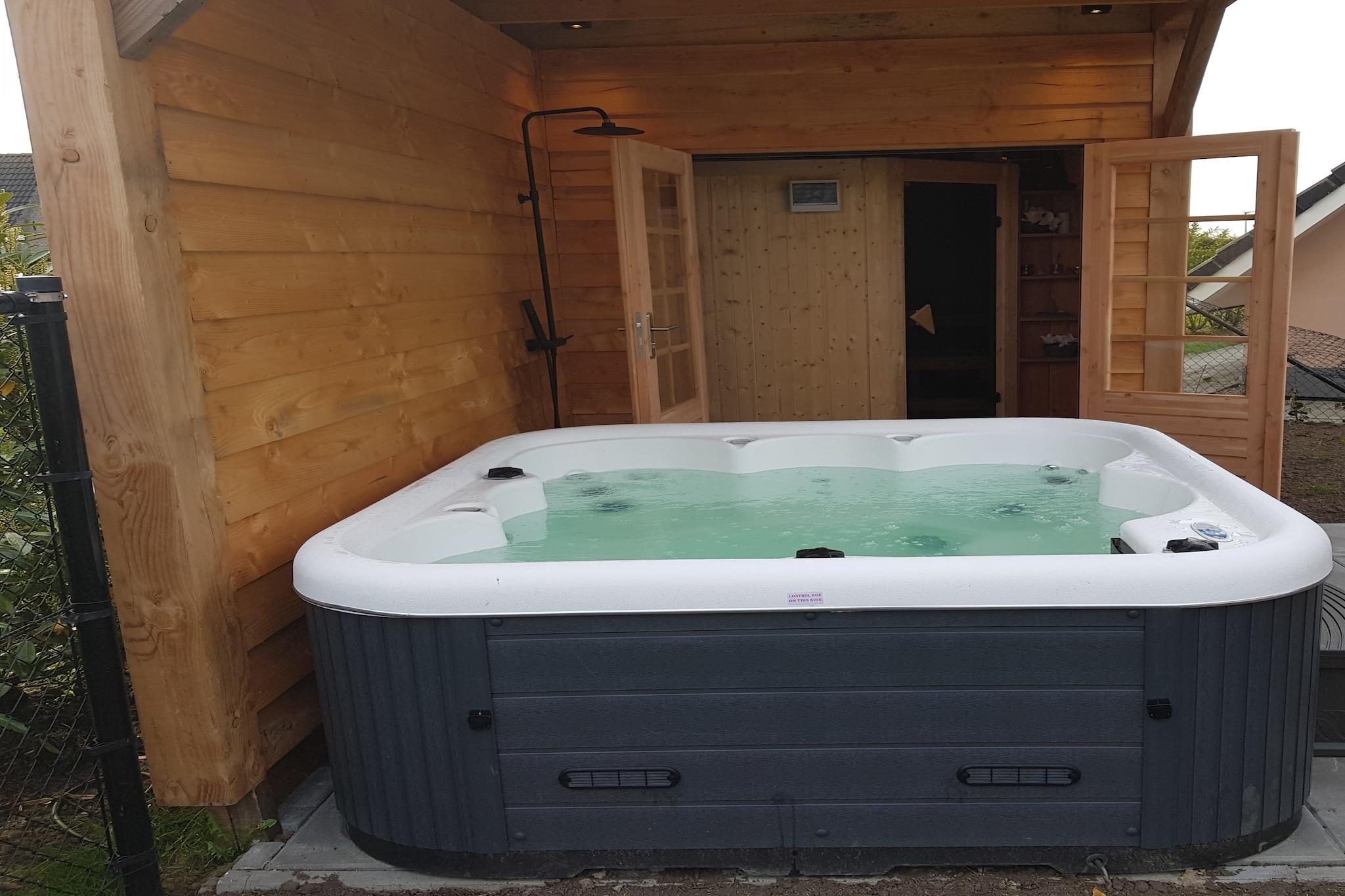 Ground floor: (hallway, Living room(TV(cable), dining table, seating area, wireless music system, streamingservice), open kitchen(electric kettle, toaster, coffee machine(cups, filter, pads), combination microwave, dishwasher, fridge-freezer), bathroom(bathtub or shower, washbasin, toilet)) On the 1st floor: (bedroom(double bed or 2 single beds), bedroom(double bed or 2 single beds), bedroom(double bed or 2 single beds), Landing(microwave)) Bubble bath(outside), shower(outside), sauna, washing machine, garden doors, heating(central), terrace, garden(fenced), garden furniture, garden furniture, BBQ, deckchairs, swimming pool(shared with other guests), tennis court(shared with other guests), children's bed